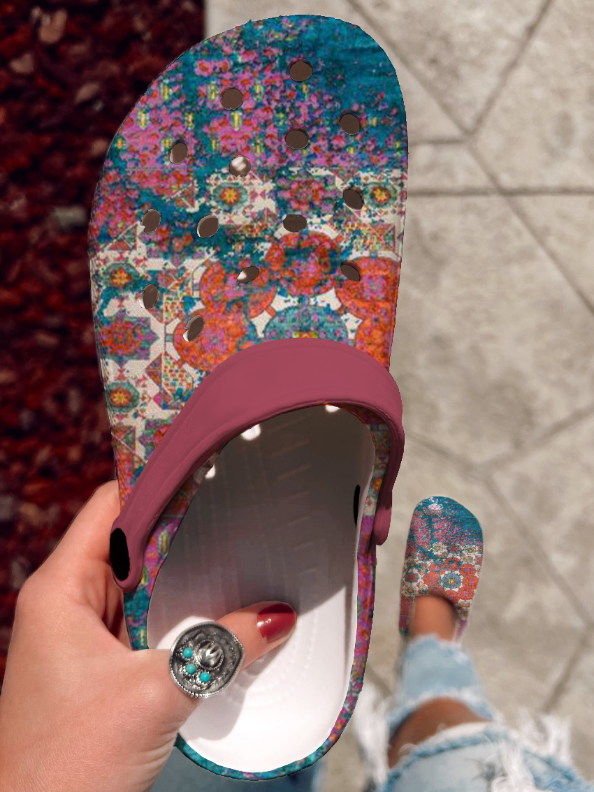 Vintage Bohemian Floral Art Print Casual Hole Slippers