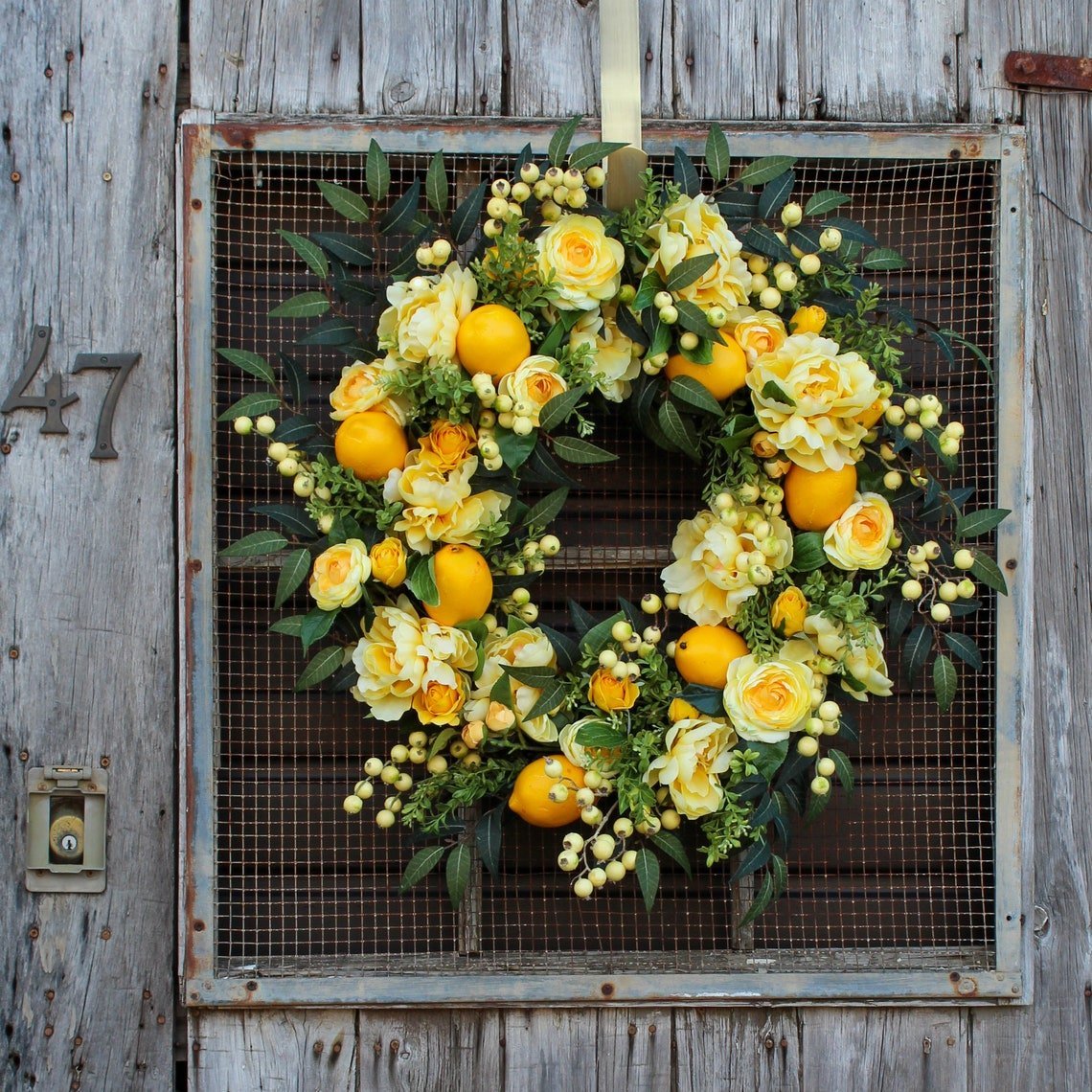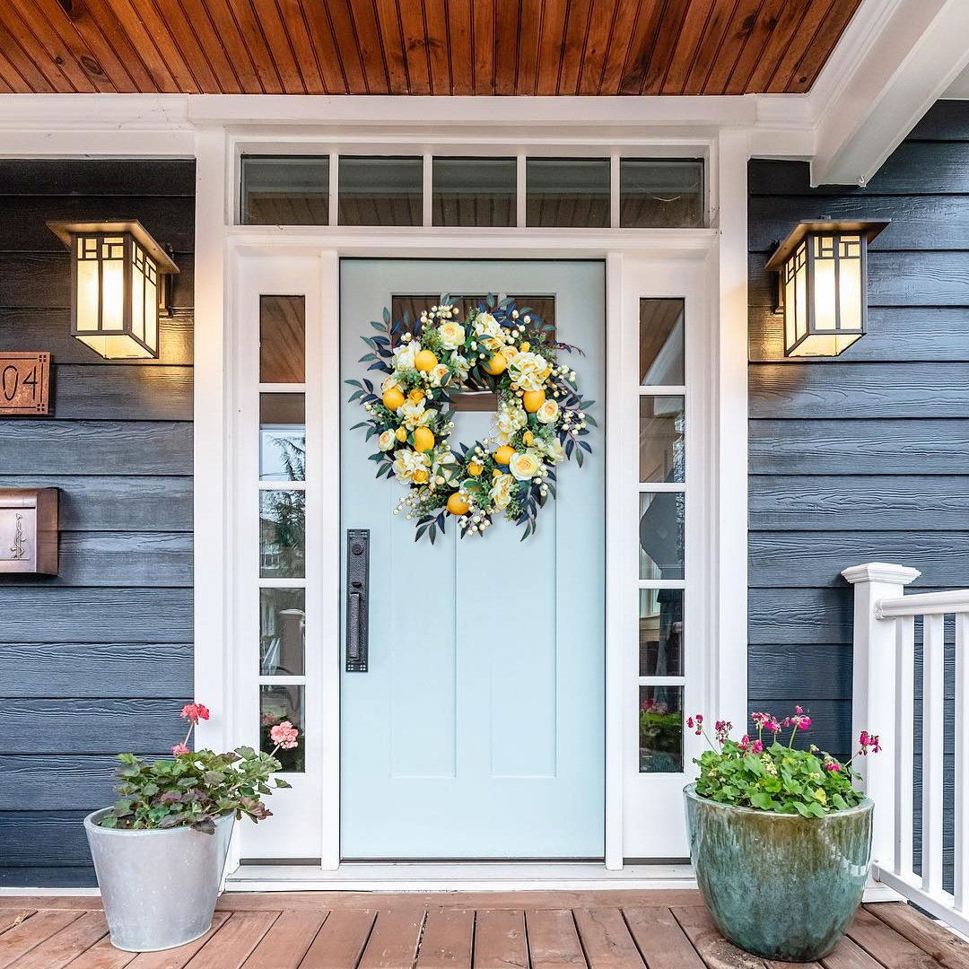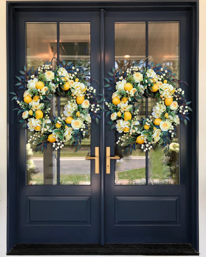 The lemon summer wreath is perfect for your front door or anywhere in the house. If you are looking for wreaths that can be seen on the street and are sure to make your neighbors envy you, then this lemon wreath is perfect for you. Bring some meaning to your front door. Use this rich lemon garland as a front door decoration