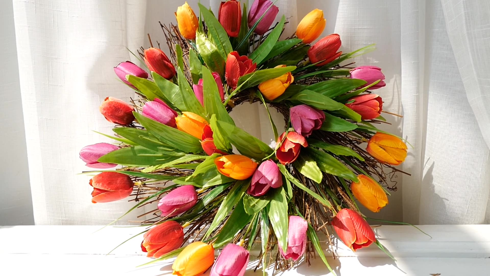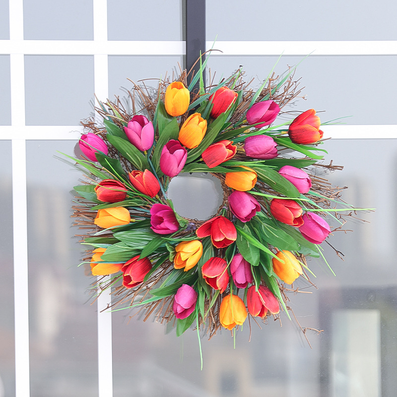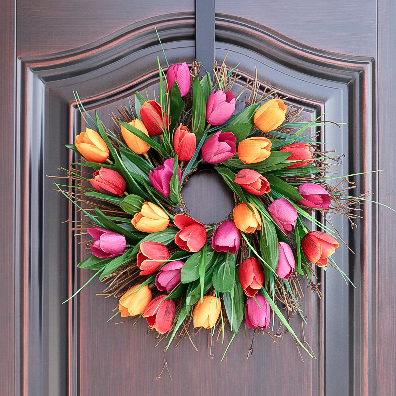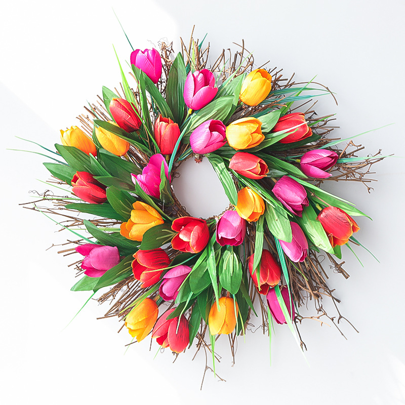 🌸 🍃 🌸 🍃 🌸 🍃 🌸 🍃 🌸 🍃 🌸🍃 🌸💐Bright Spring Tulip Wreath for your front door.We woven the four colors of tulips into the shape of a Wreath, full and gorgeous,e a perfect gift for the spring.