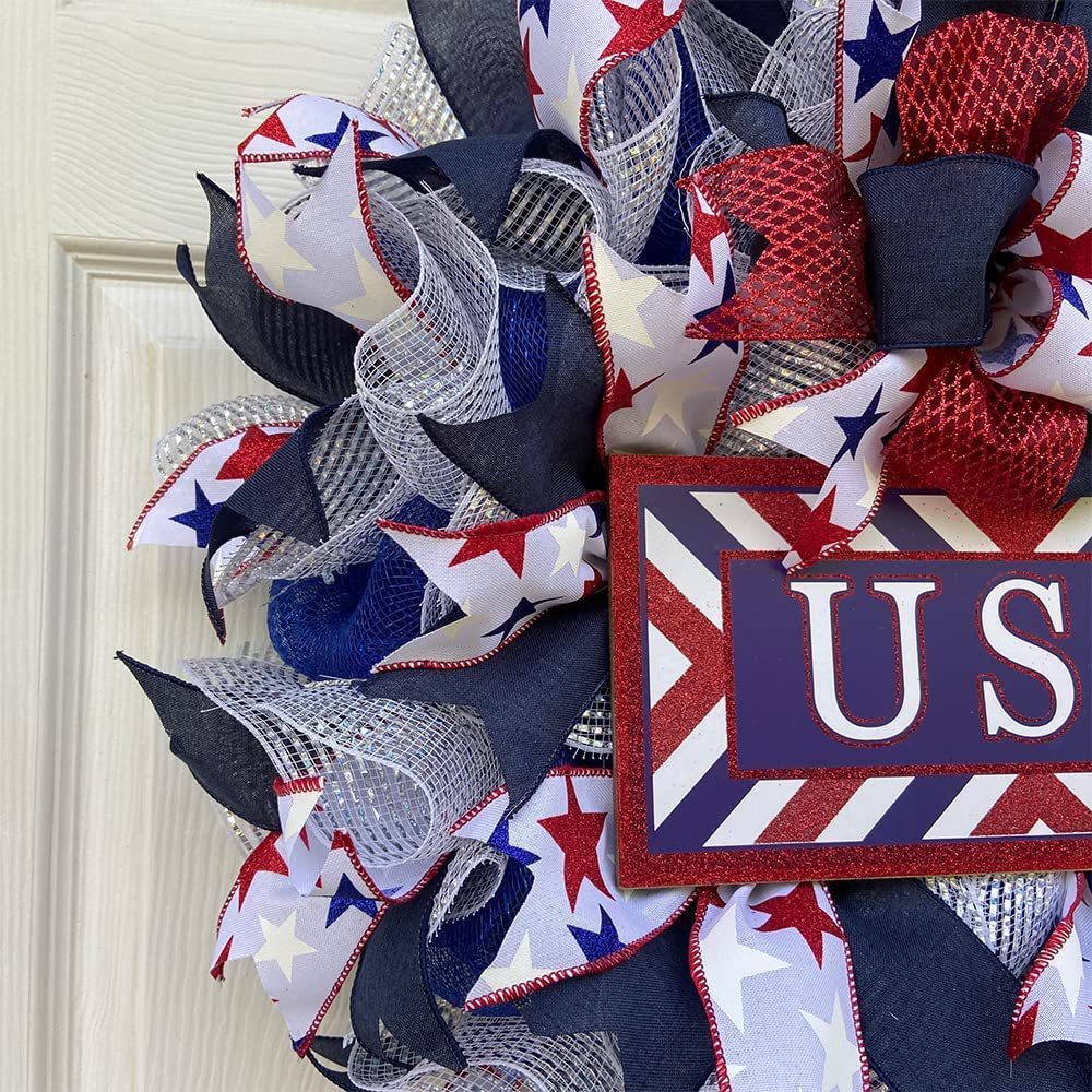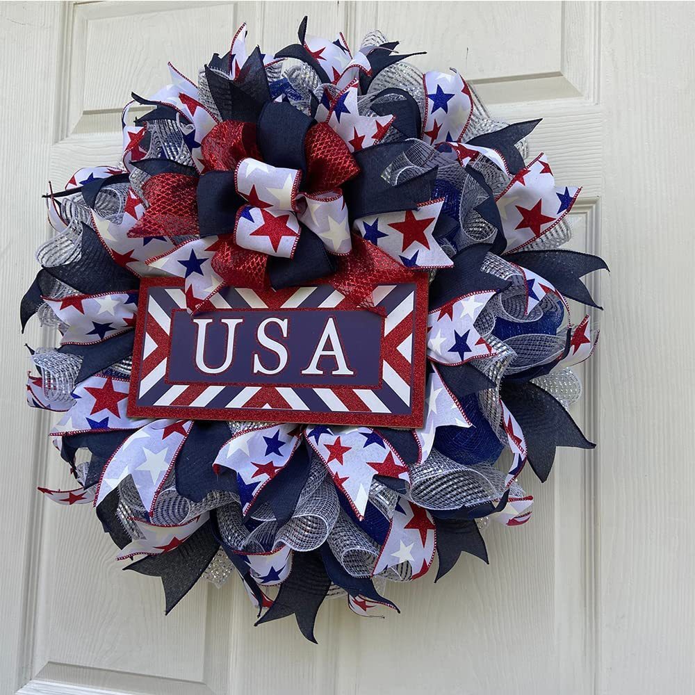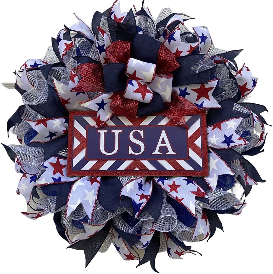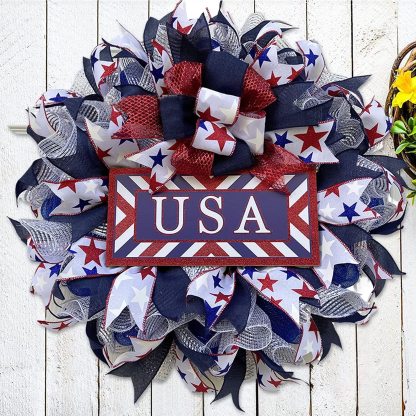 👍The patriotic wreath is made of linen material, with bright colors and good quality. ✅It does not require special cleaning and maintenance and can be used for a long time.