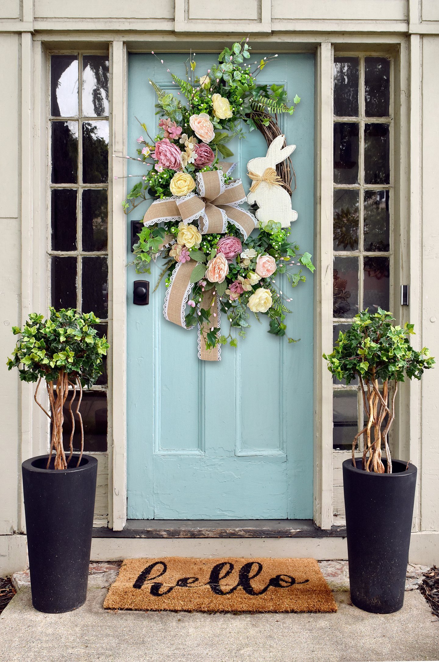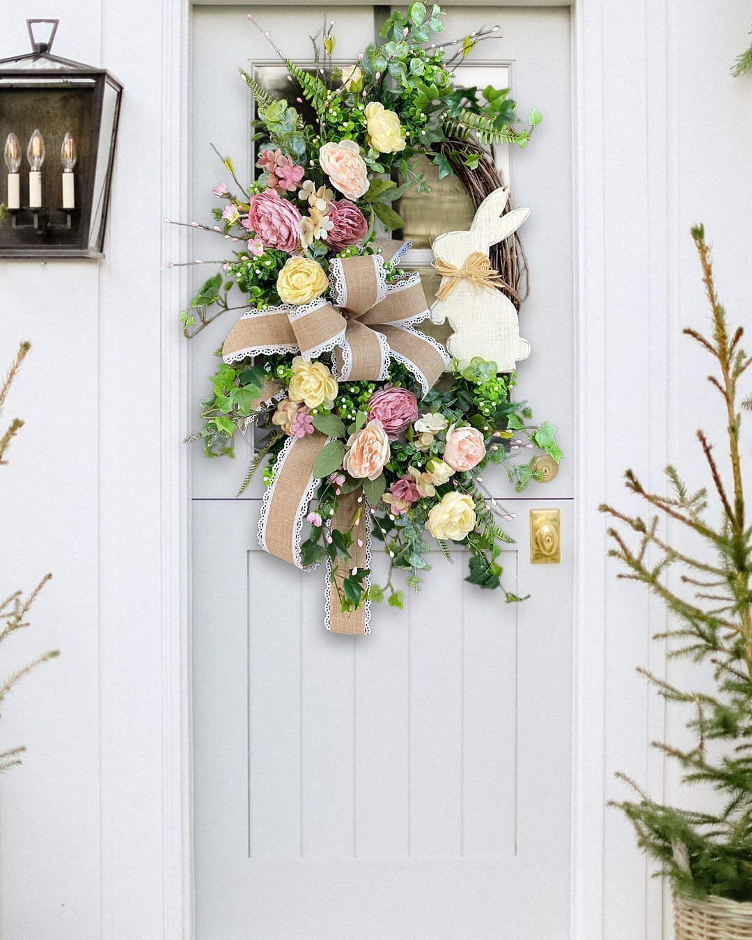 🍄Pastel tones, relaxing feelings, ring in Spring with this delicate design, a mixture between boho, cottage and farmhouse styles.🐰Elegant and Romantic French Country Easter Bunny Wreath that is beautifully detailed for a lovely finishing touch to your Easter and Spring front door decor.