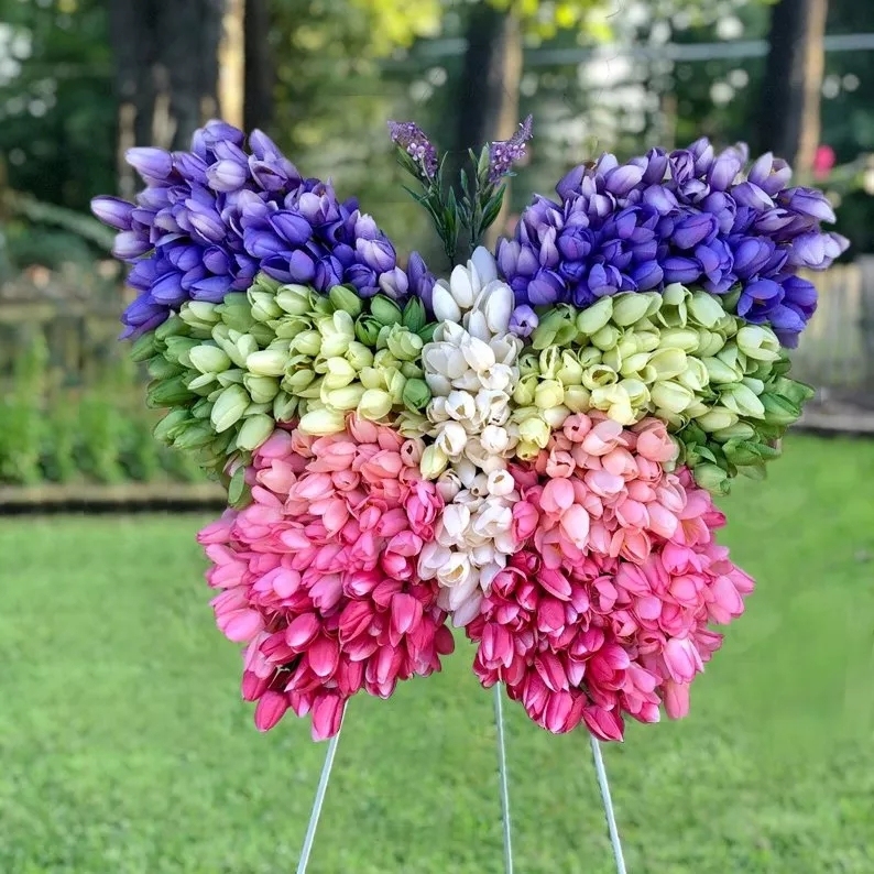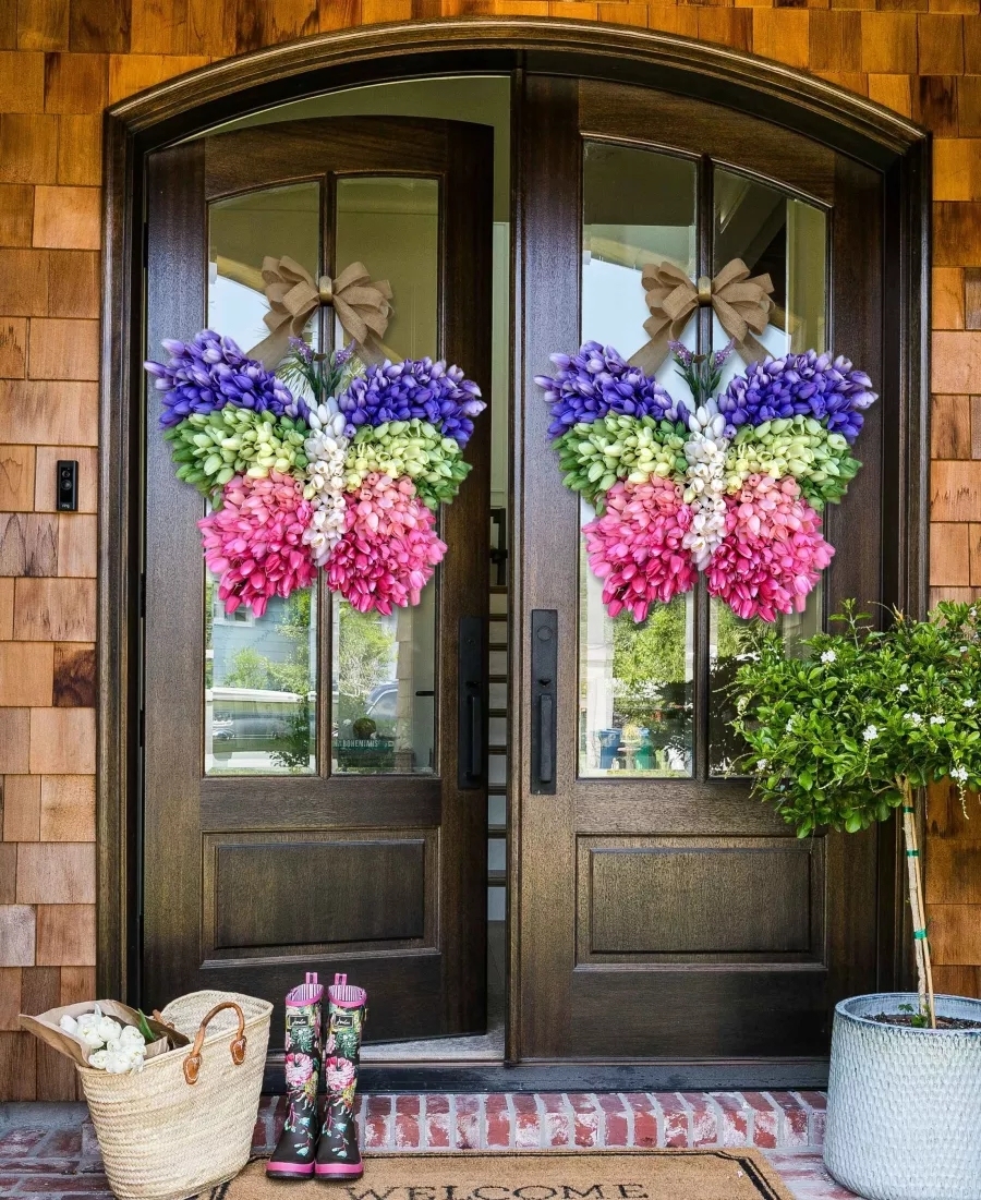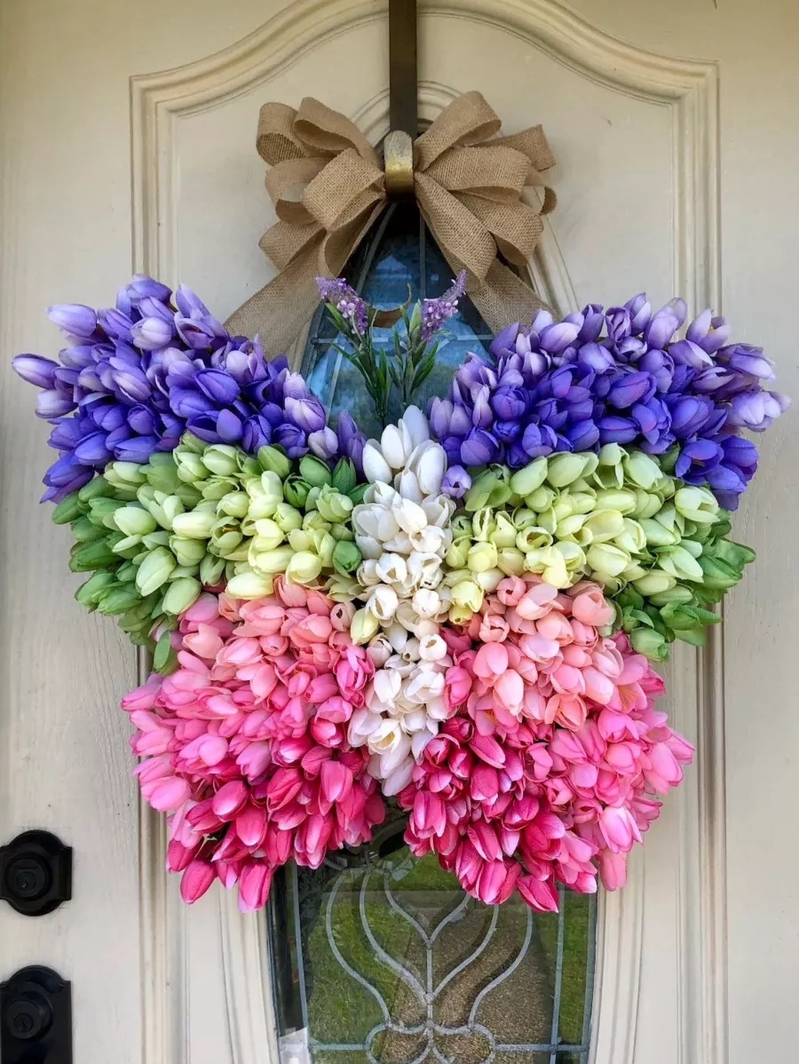 TULIP BUTTERFLY SPRING WREATH for your front door.We woven the four colors of tulips into the shape of a butterfly, full and gorgeous,e a perfect gift for the spring.🥰🥰🥰