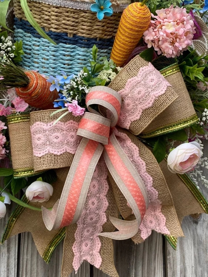 🐰 Designer burlap lined with green ribbon. pink lace burlap ribbon and more.