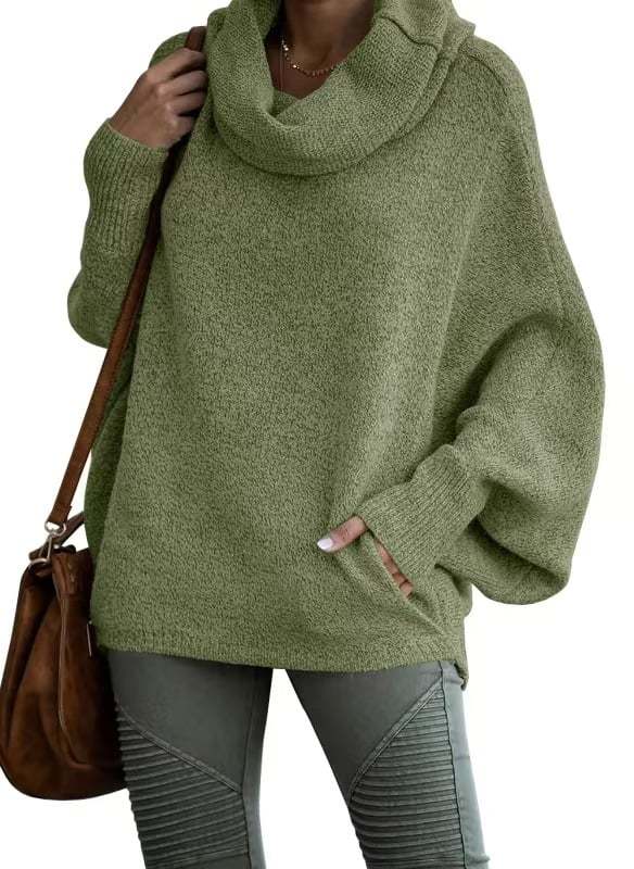 Cowl Neck Batwing Sleeve Pullover Sweater with Pockets