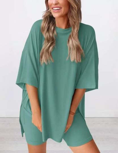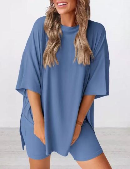 2025 Summer Casual Oversized Shirts Shorts Matching Women's Two Piece Lounge Set