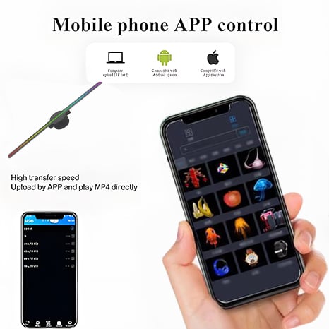 🌈The 3D Holographic Fan Projector features a user-friendly app that connects via WiFi, making it easy to change content on the display. Compatible with both Android and iOS, it offers a seamless experience for switching video footage!