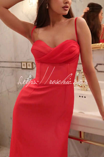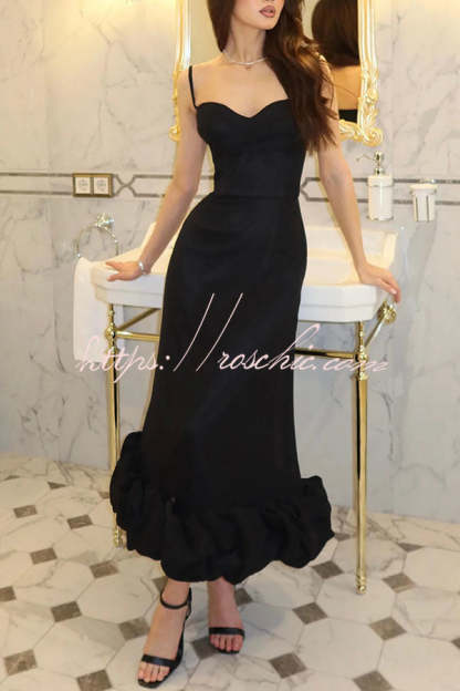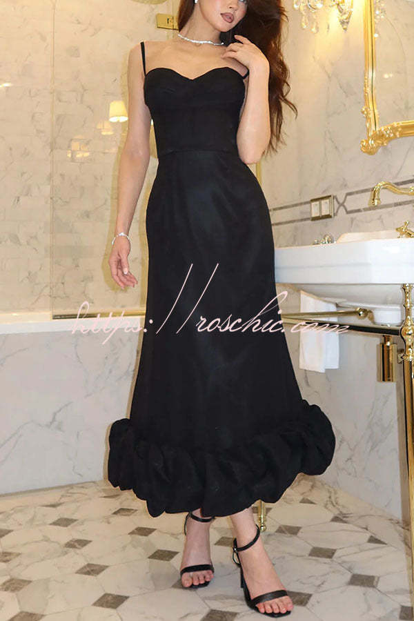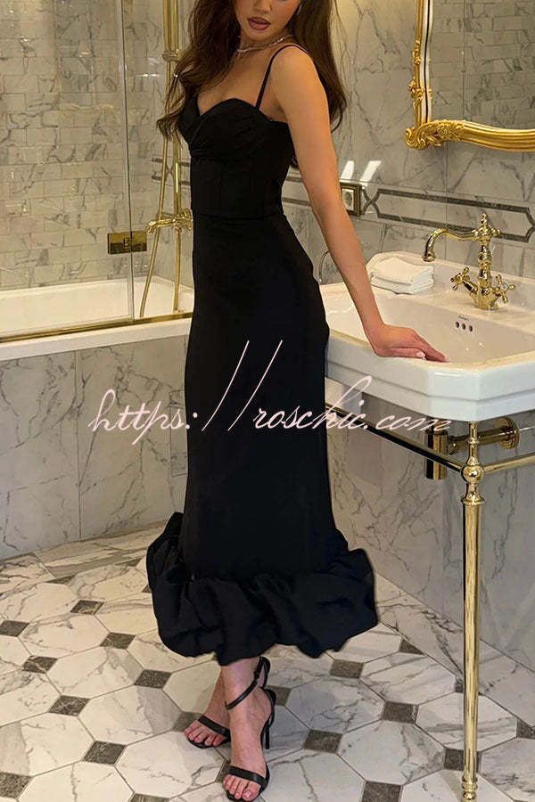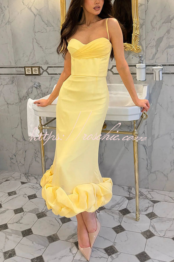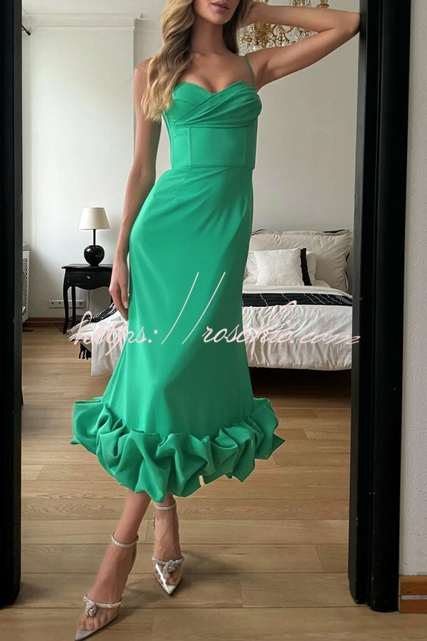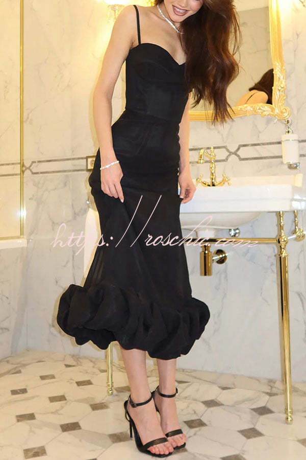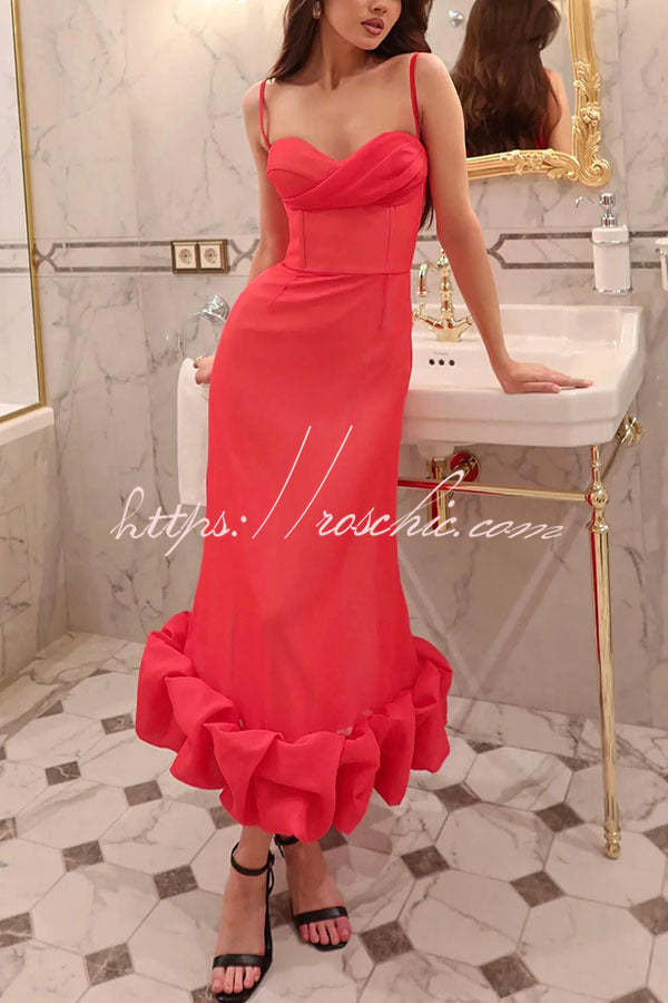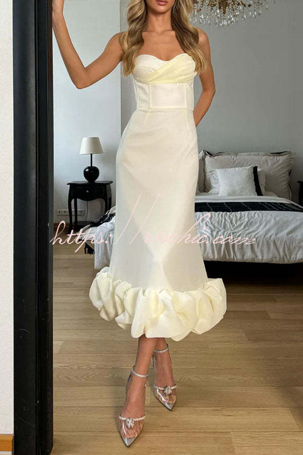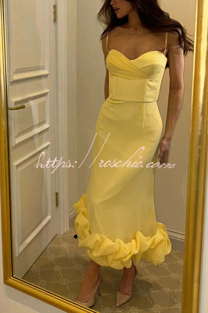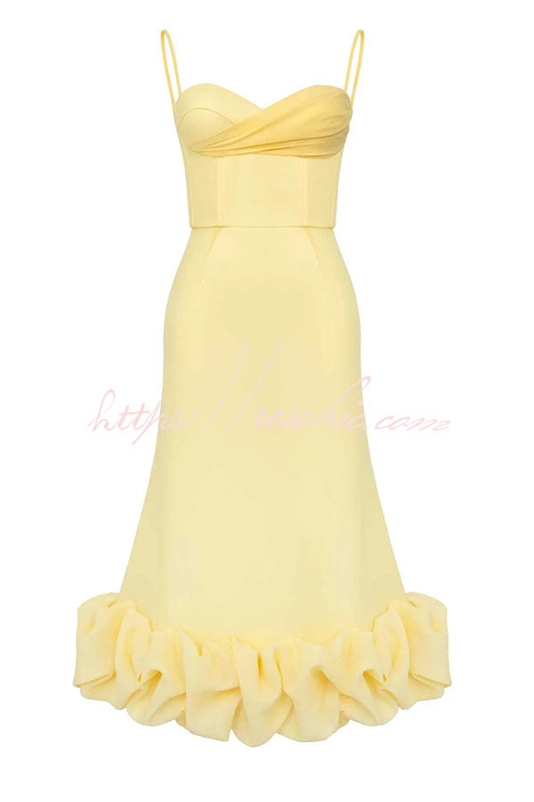 Dreamy and Romantic Ruched Bust Cloud Shape Hem Slip Midi Dress
