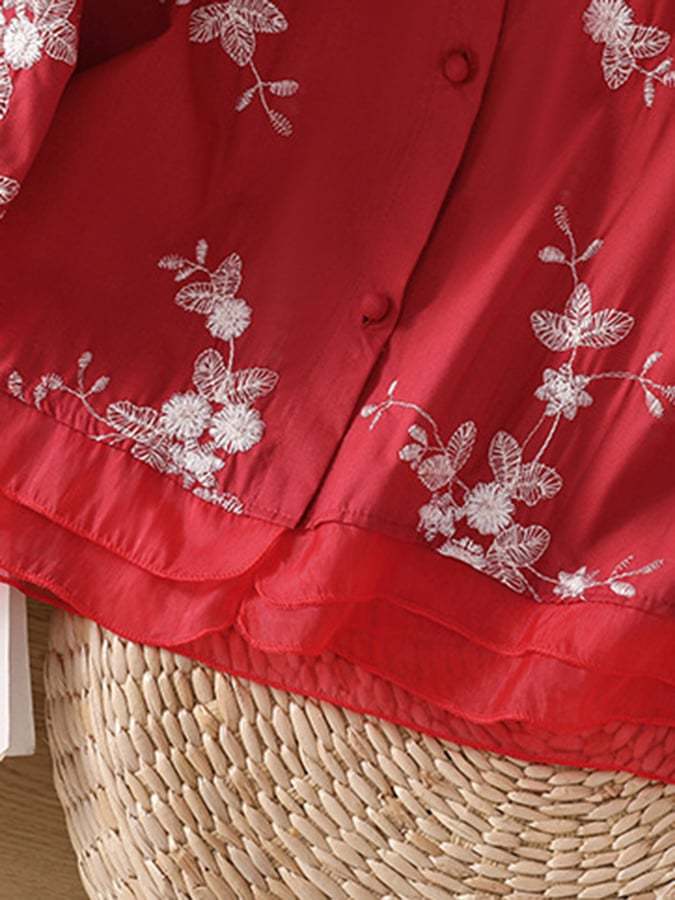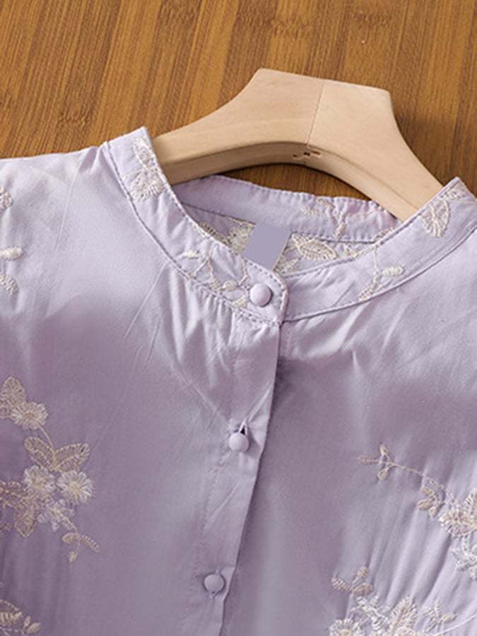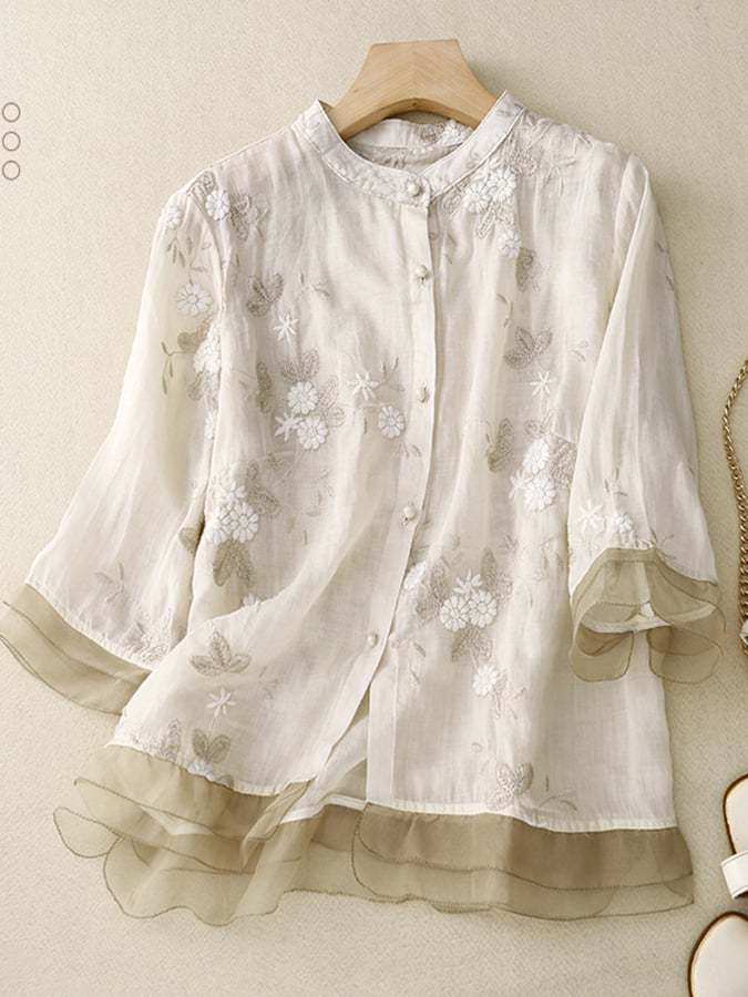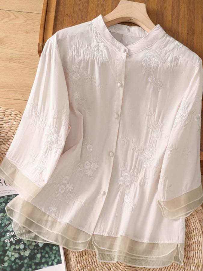 Art Retro Embroidery 3/4 Sleeve Patchwork Shirt