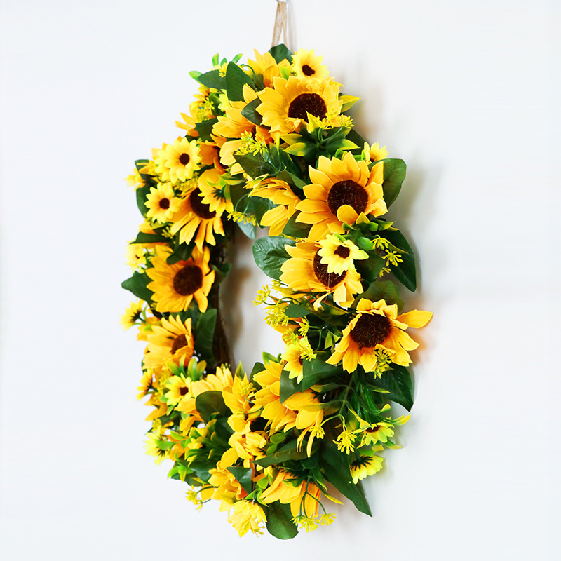 Artificial Sunflower Wreath Flower Wreath With Yellow Sunflower And Green Leaves