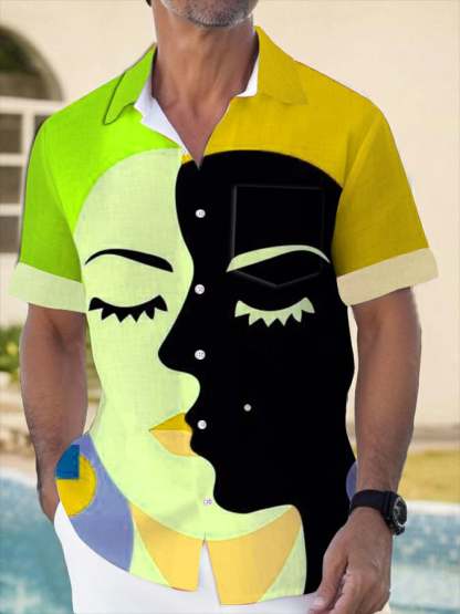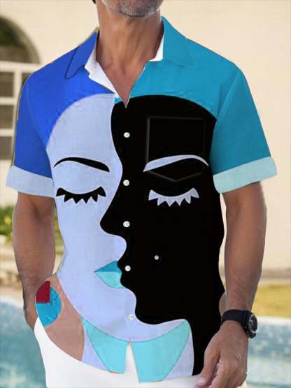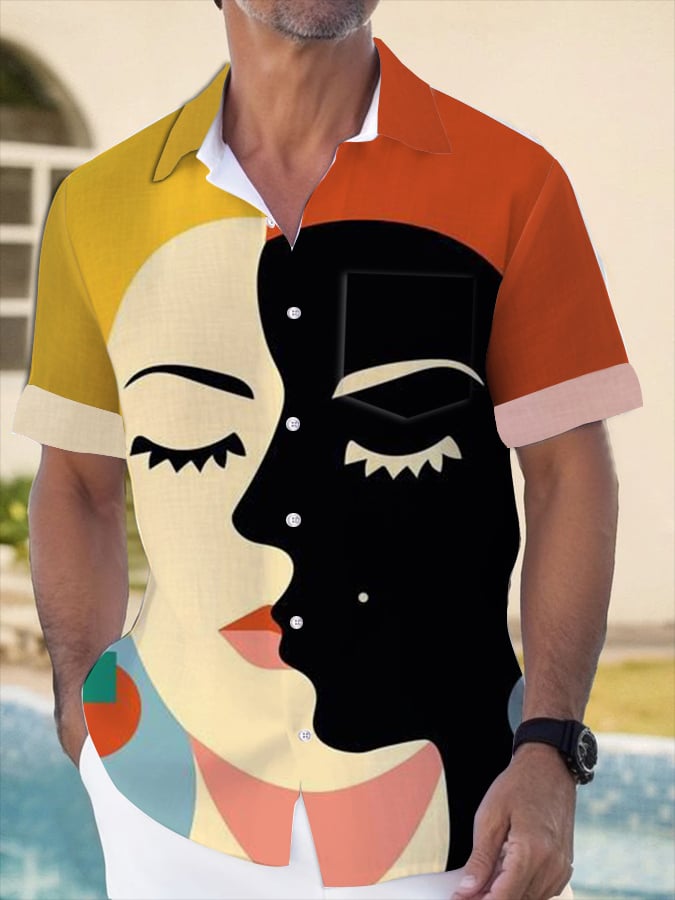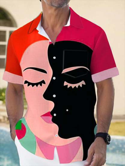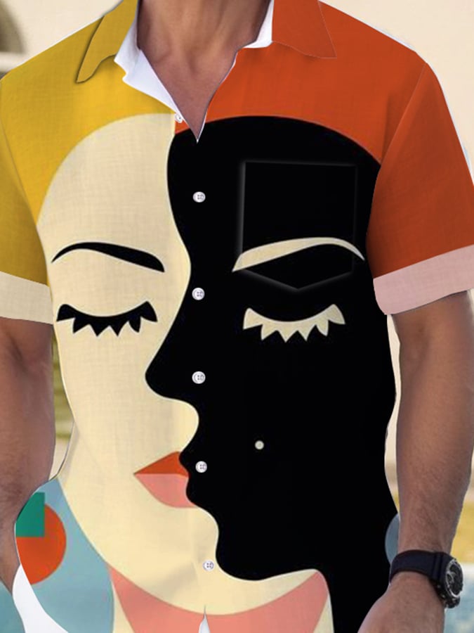 Artistic Abstract Print Lapel Pocket Short Sleeve Shirt