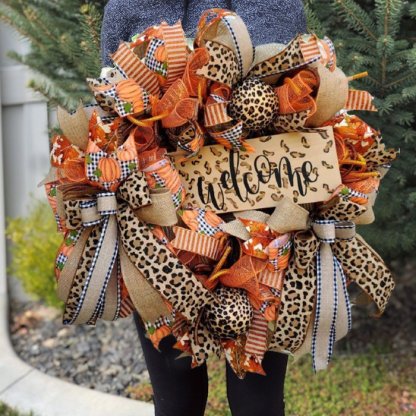 🍁Use this orange leopard garland throughout the season to say "Welcome to our home".  Enjoy this beautiful and luxurious wreath in the years to come! Welcome your guests with this stunning Forever fall leopard wreath.