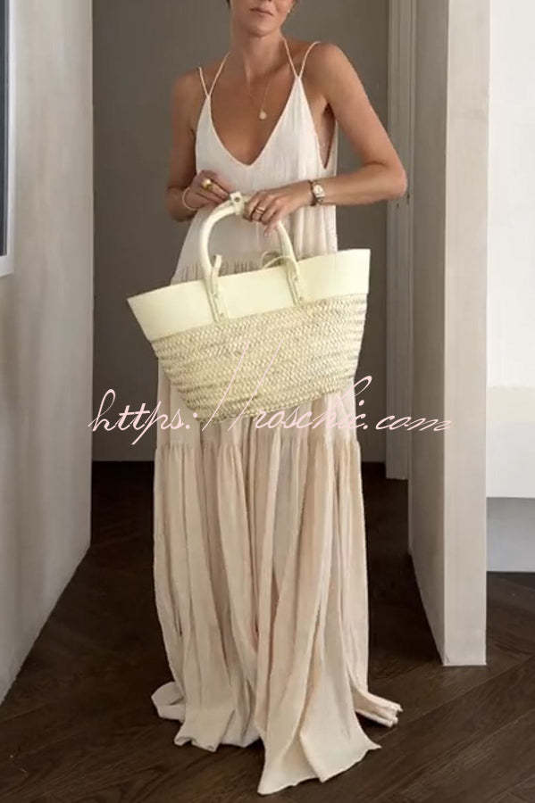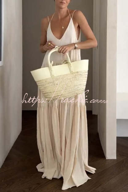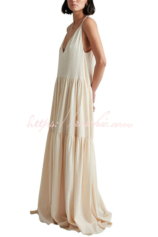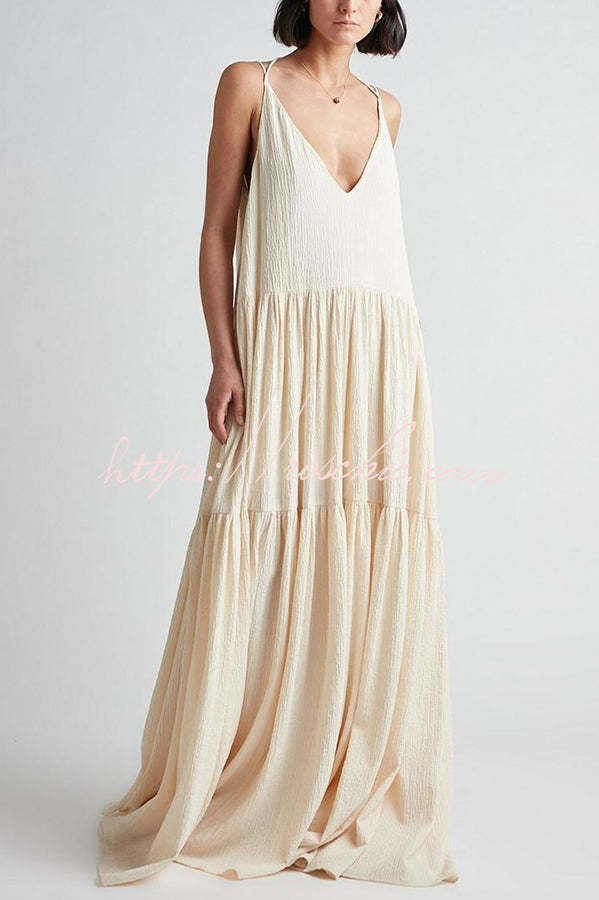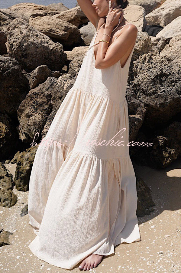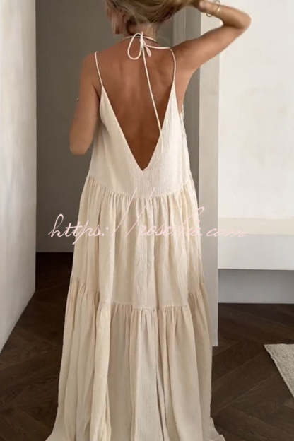 Beach Day Linen Blend Back Tie-up A-line Layered Maxi Dress