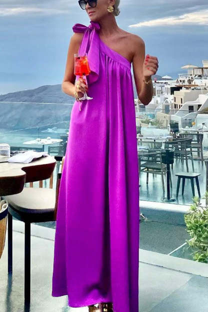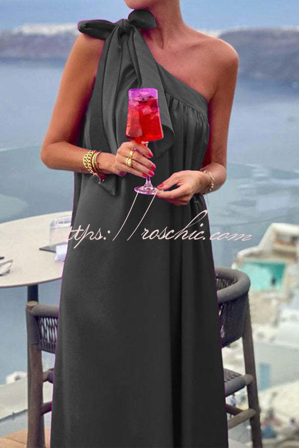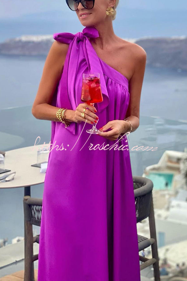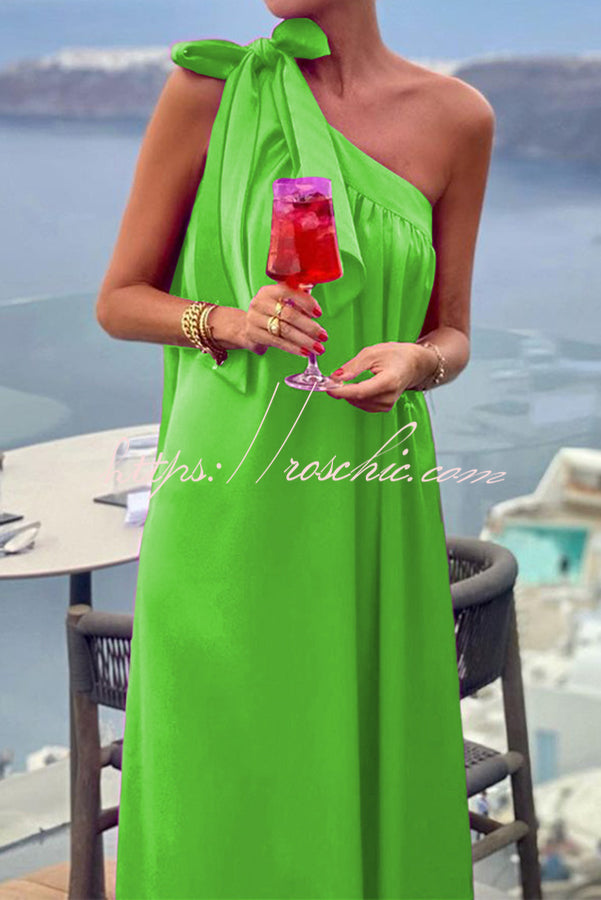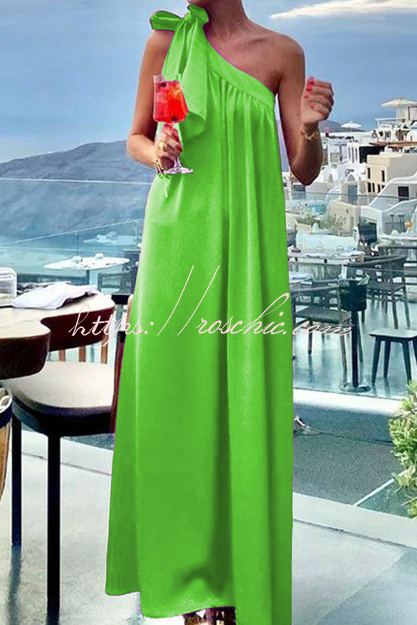 Beach Party Satin One Shoulder Bow Detail Loose Maxi Dress