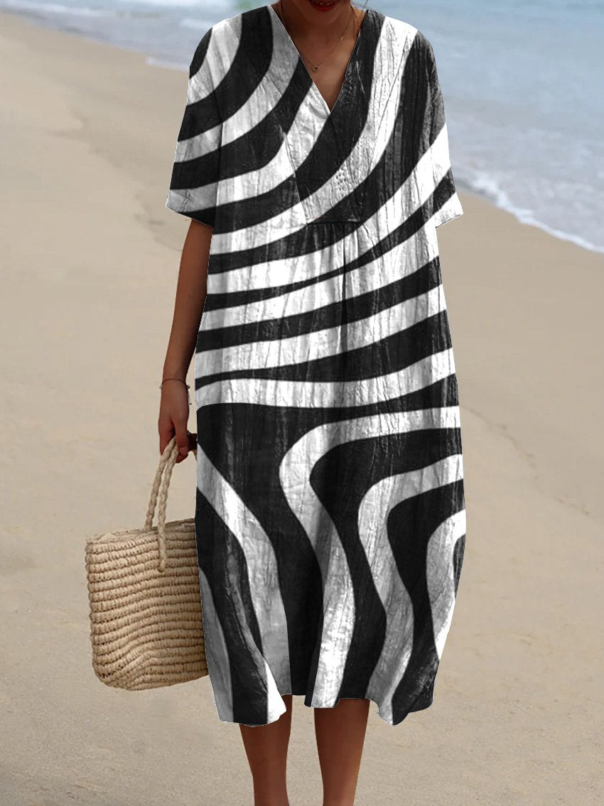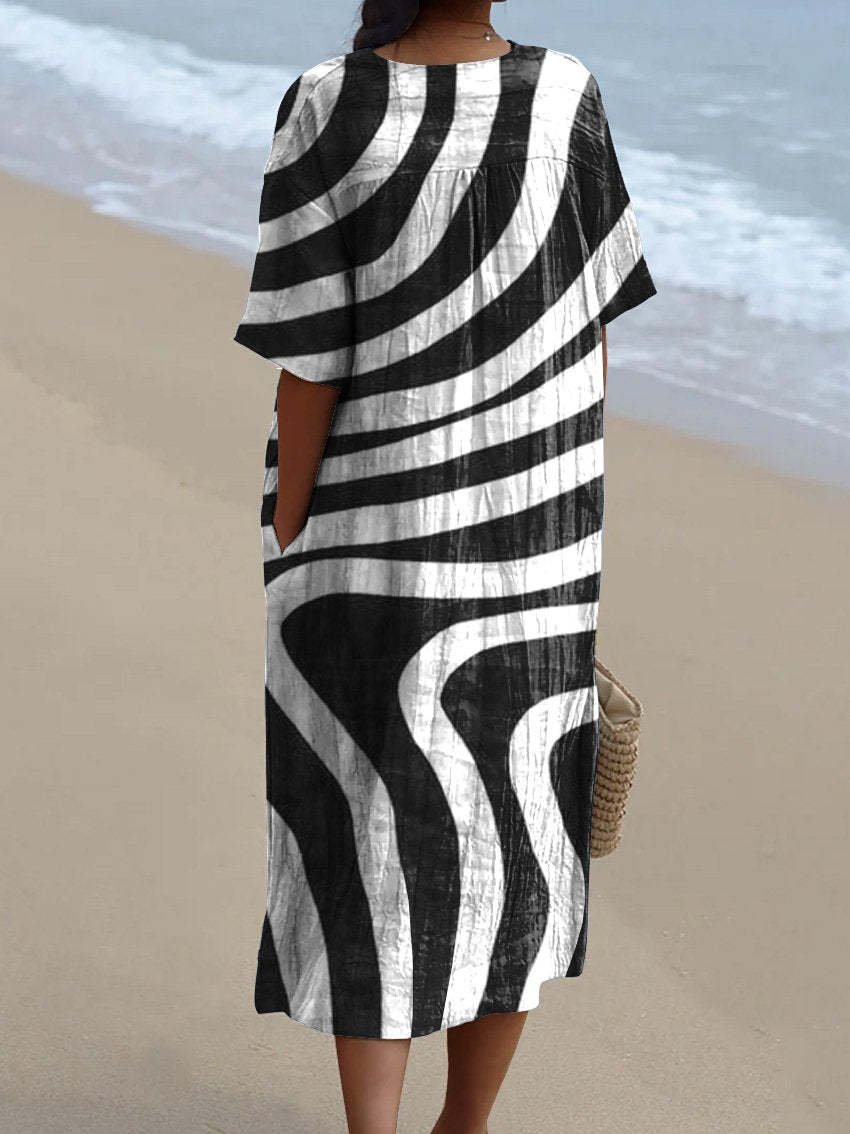 Black And White Abstract Swirl Art Printed Women's Flowy Dress
