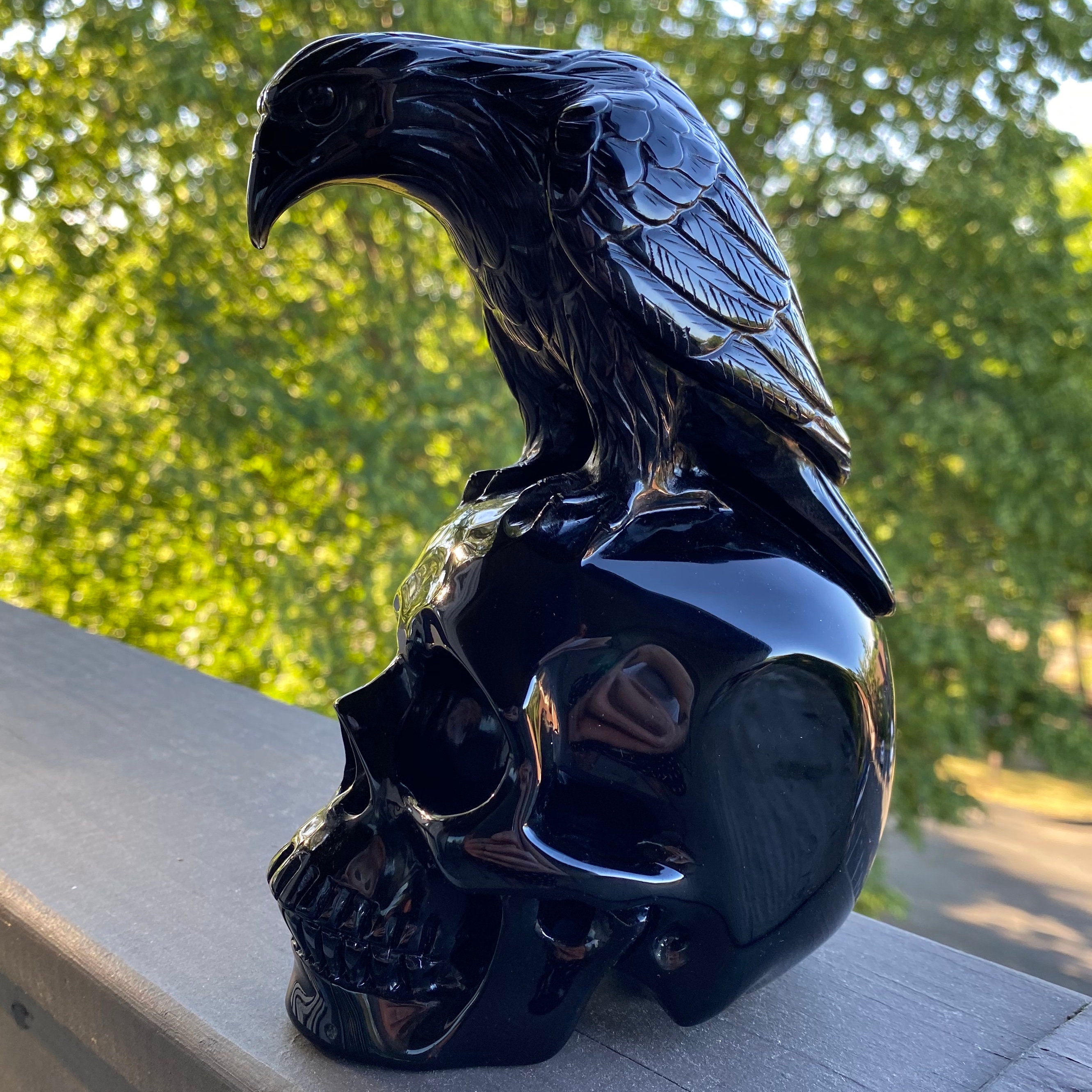 You will receive the exact Black Obsidian Skull and Raven pictured. Natural crystals and stones will vary in color depending on lighting. Each crystal is unique and no two are identical.
