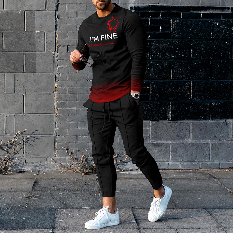 Black Red Letters T-Shirt And Pants Two Piece Set