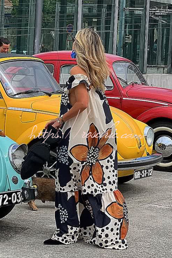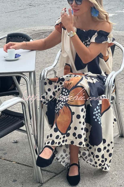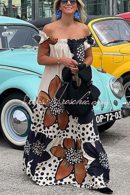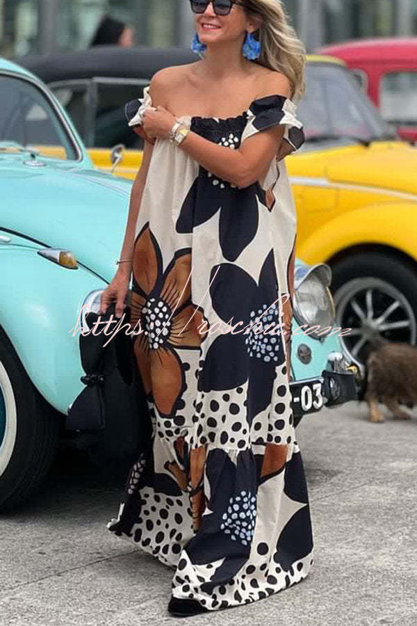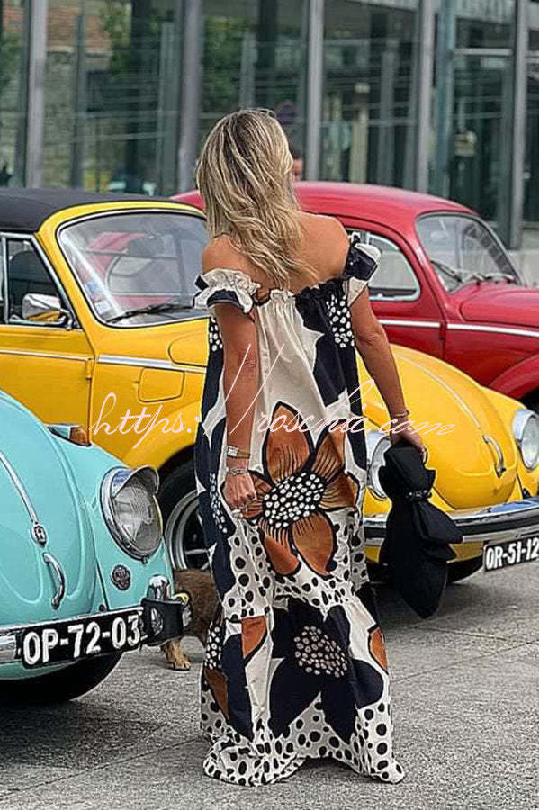 Bloom Season Linen Blend Floral Printed Off Shoulder Pocketed A-line Maxi Dress