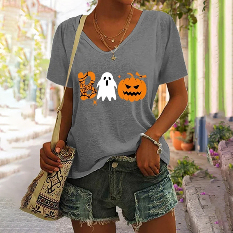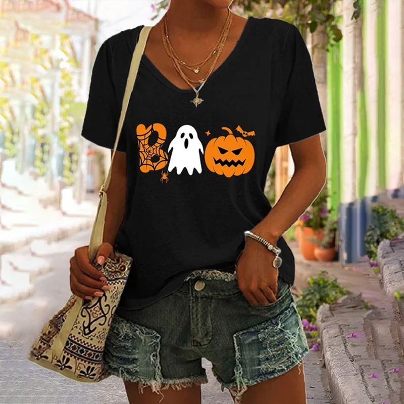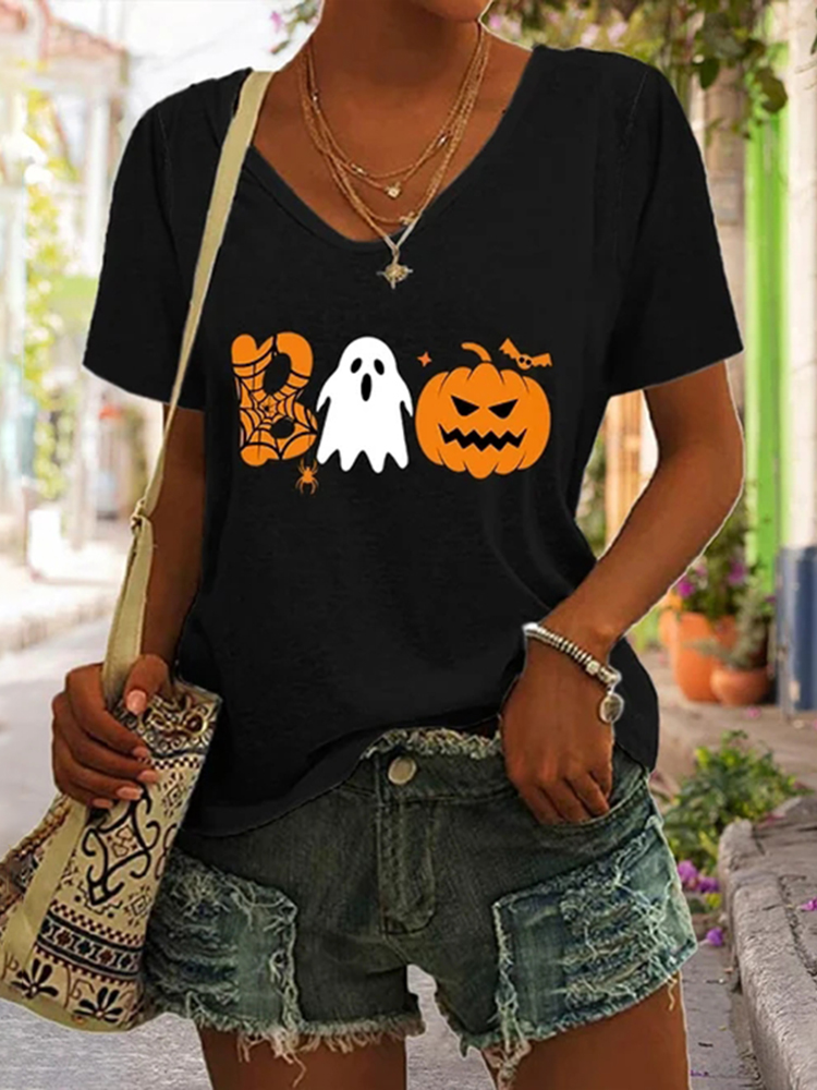 Boo Ghost For Halloween Pumpkin Print Casual T-Shirt