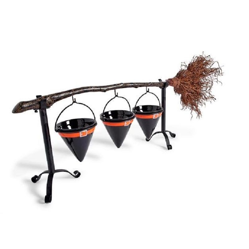 • Broomstick features three hooks for hanging sign or three snack bowls