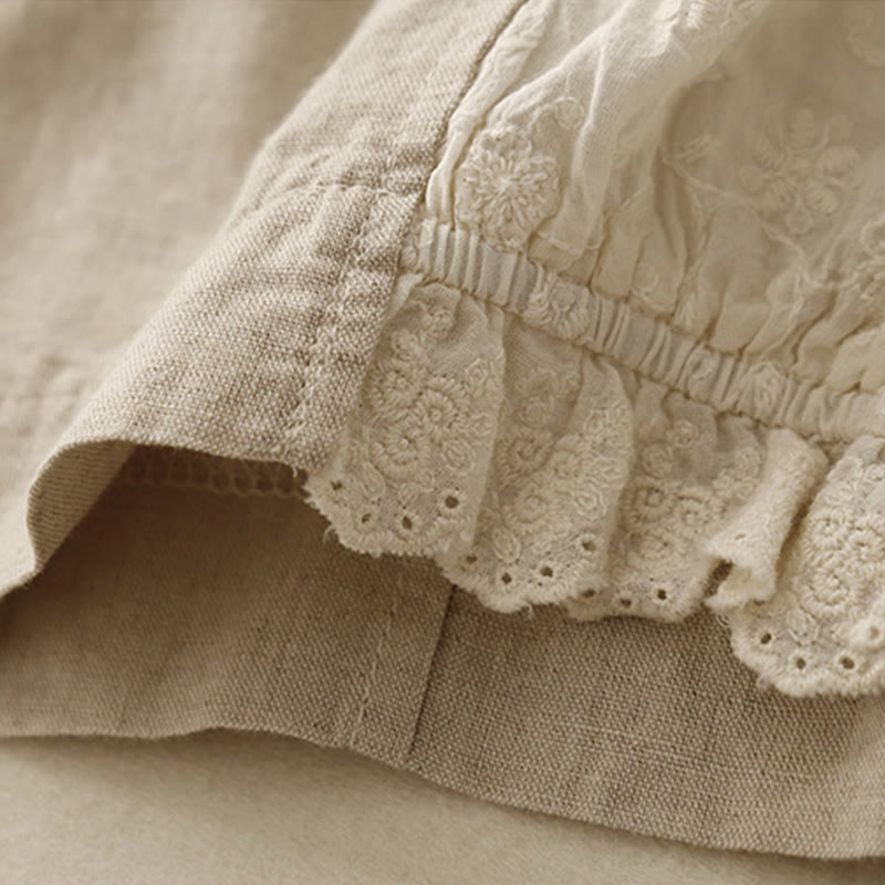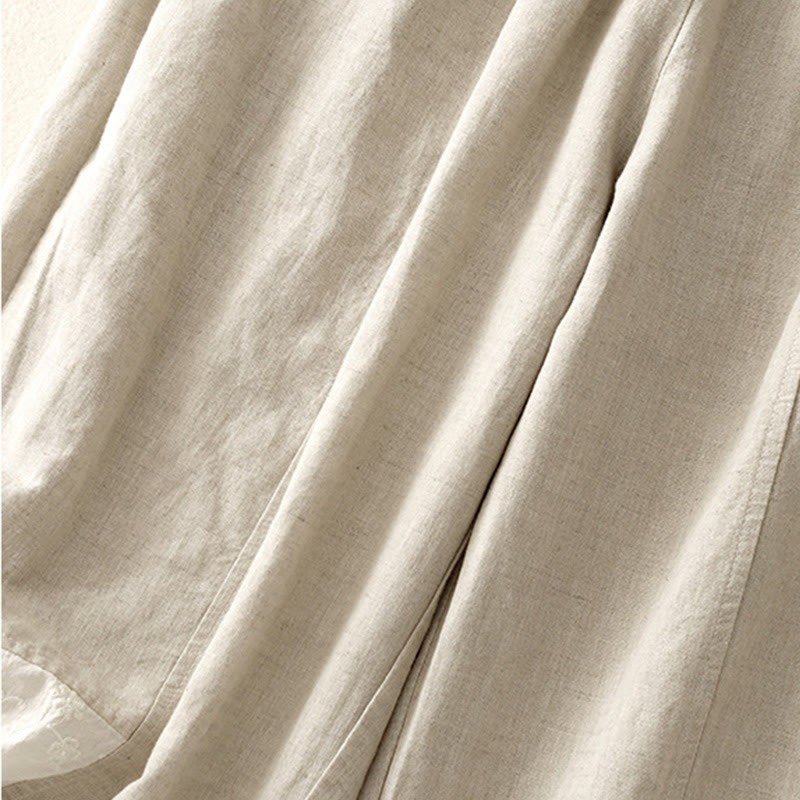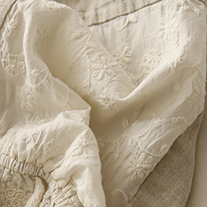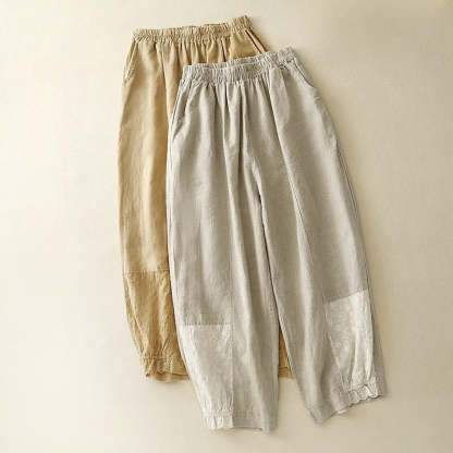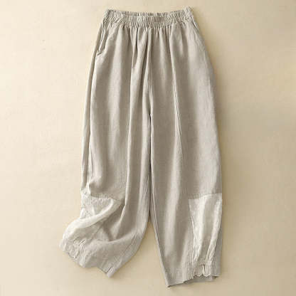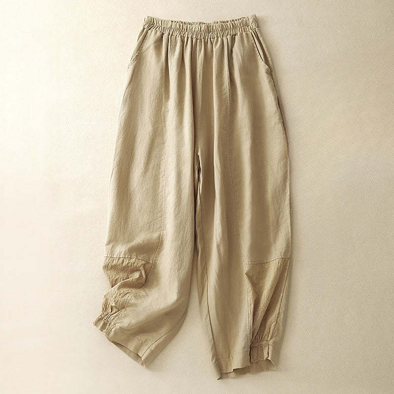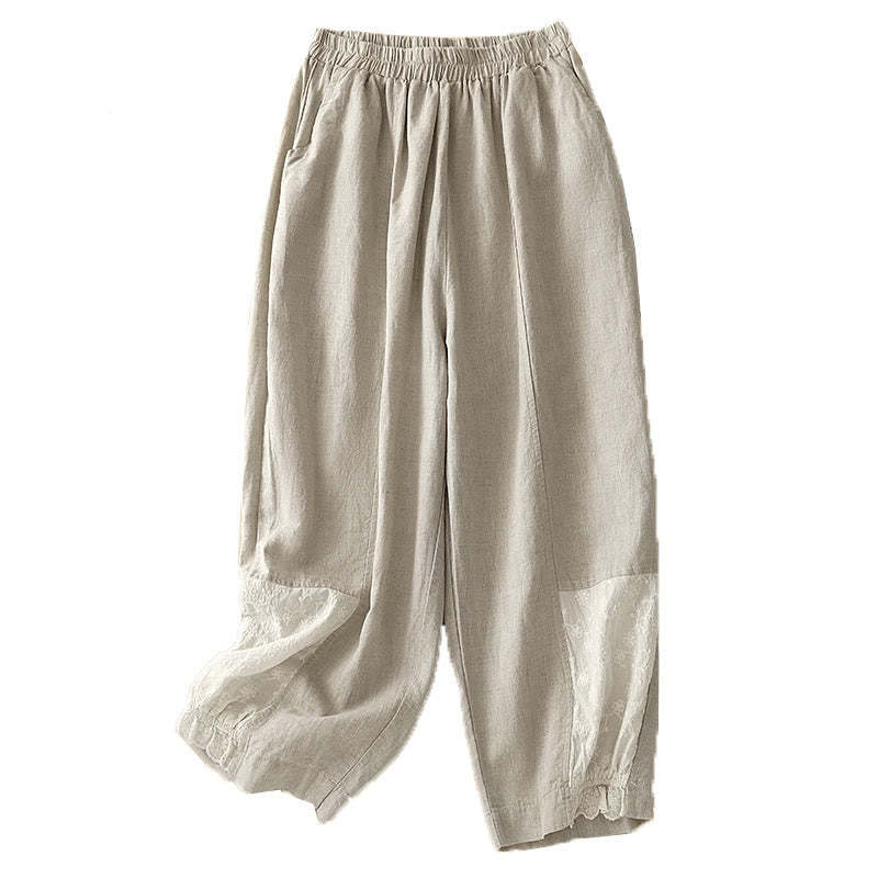 Buddha Stones Casual Embroidery Patchwork Fabric 7-8 Length Cropped Pants Women's Cotton Harem Pants With Pockets