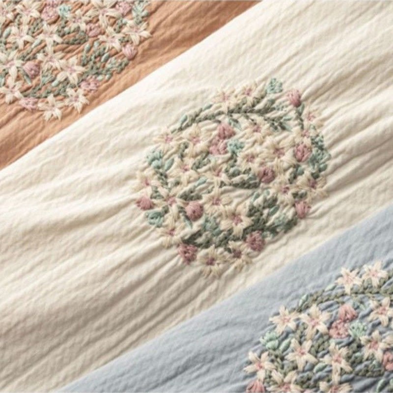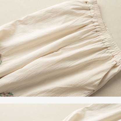 Lace Trim Embroidered Cotton Pants feature delicate white lace at the hem and intricate circular floral embroidery on the legs, creating a refined, artisanal look. Made from soft, breathable cotton, these pants offer comfort and ease of movement. The added pockets provide practical storage, making this a thoughtful choice for those who value both function and aesthetic appeal in their wardrobe essentials.💕