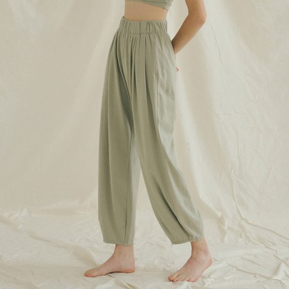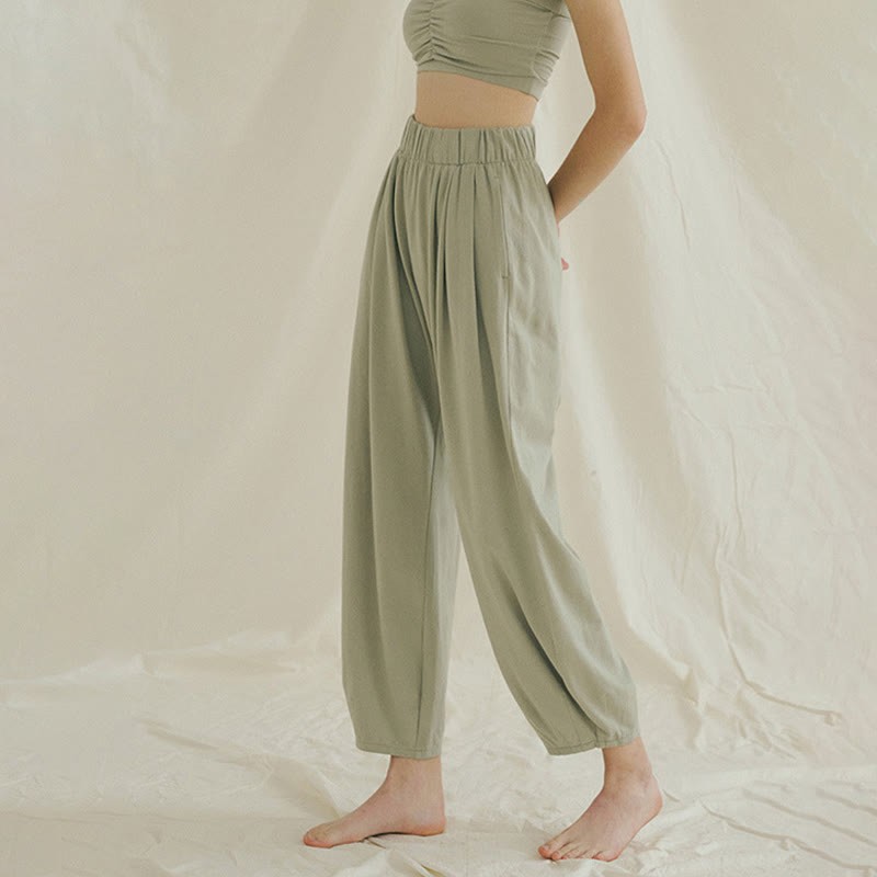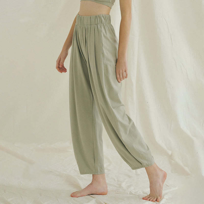 Buddha Stones Casual Plain Breathable Loose Women's Leica Harem Pants With Pockets