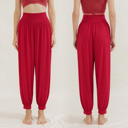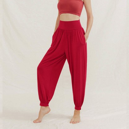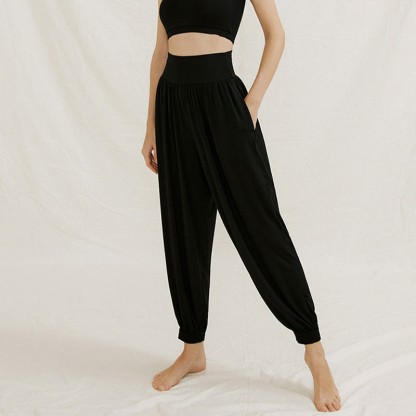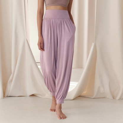 Buddha Stones Casual Plain High Waist Tummy Control Women's Leica Harem Pants With Pockets