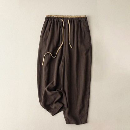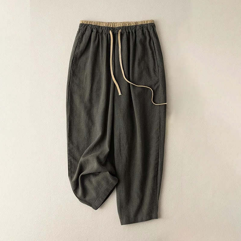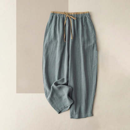 Buddha Stones Casual Solid Color Cotton Linen Drawstring Women's Pants With Pockets