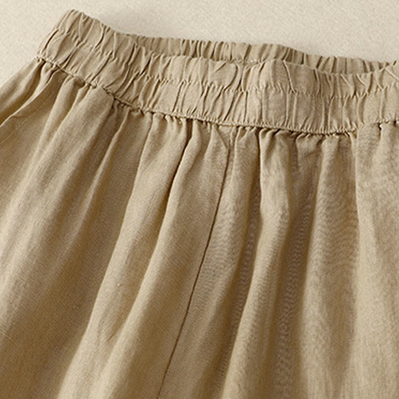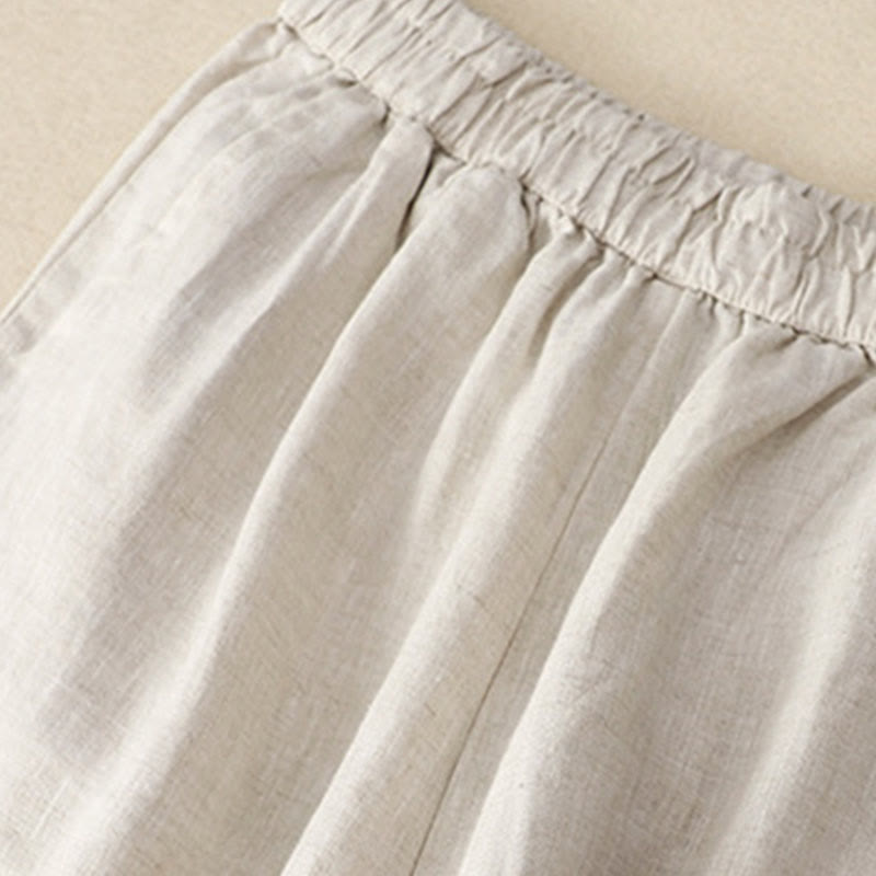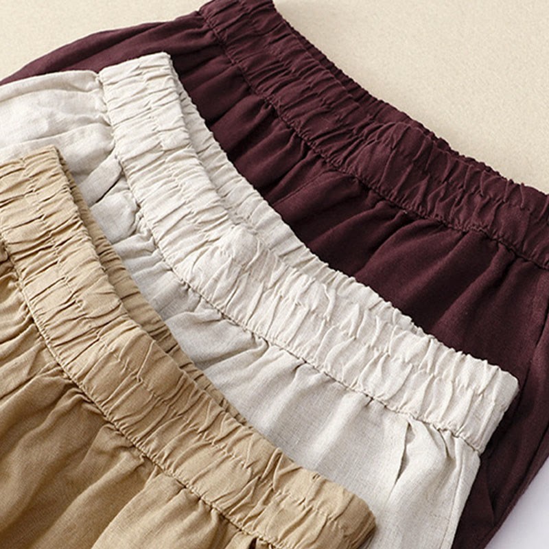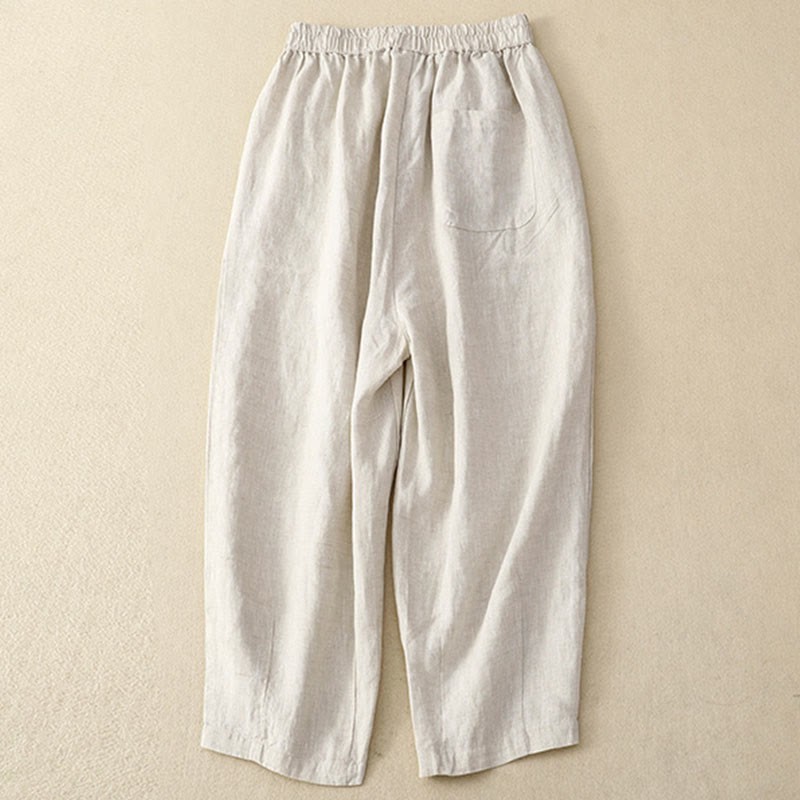 SIMPLE DESIGN: The pants features simple design elements. Elastic waistband. These are natural Ramie Linen fiber and flexible in the waist.