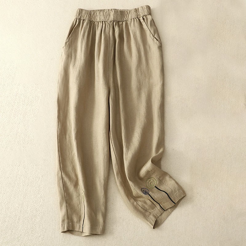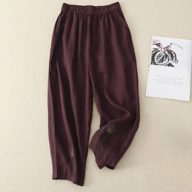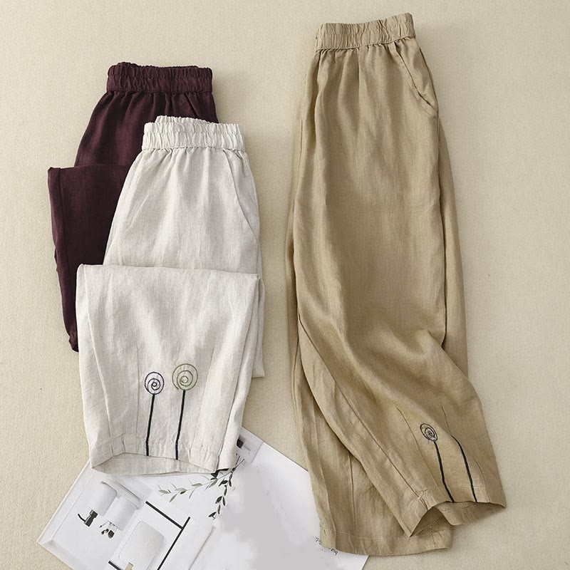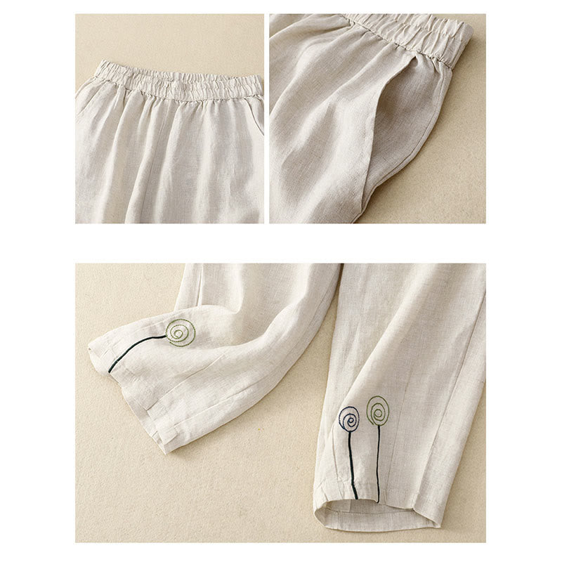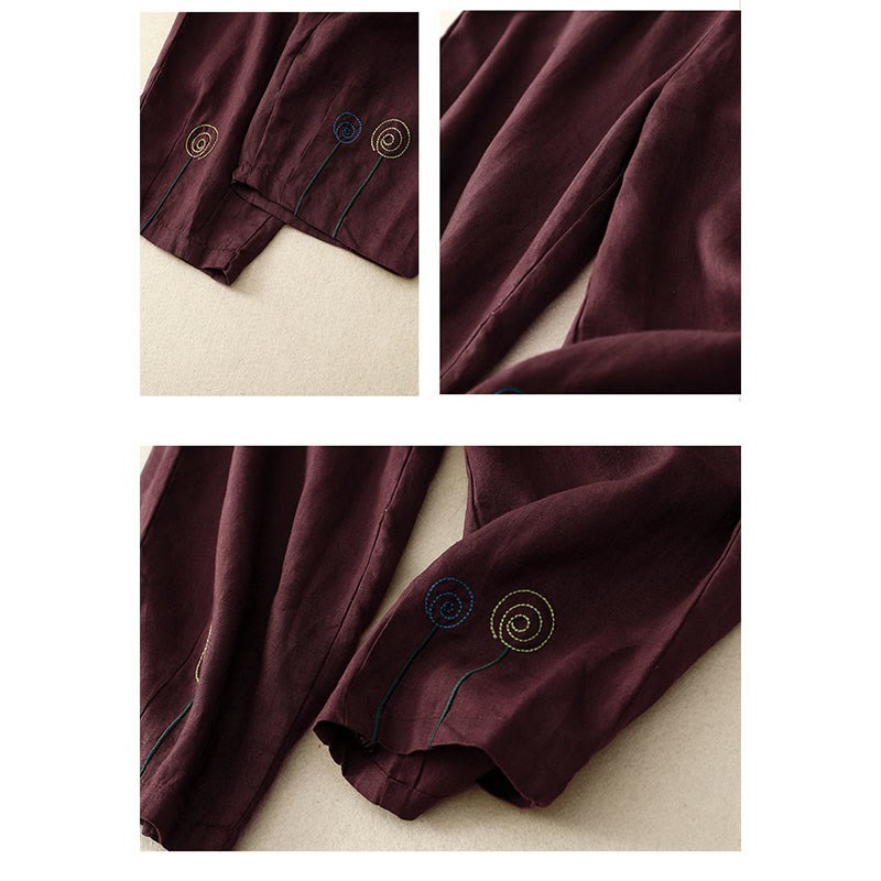 Embroidered Dandelion Loose Harem pants with pockets, offering a loose fit for ultimate comfort. These pants symbolize hope and new beginnings, ideal for those seeking tranquility and ease in their daily movements. The delicate dandelion embroidery and functional pockets make these pants a thoughtful choice for meditation and mindfulness practices, adding a touch of nature's beauty to your routine.💕