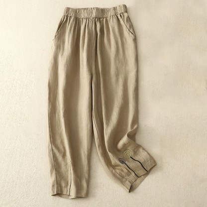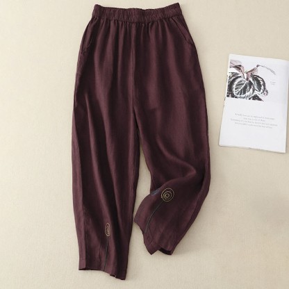 Buddha Stones Embroidered Dandelion Loose Harem Pants With Pockets