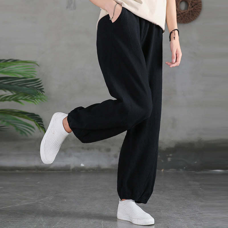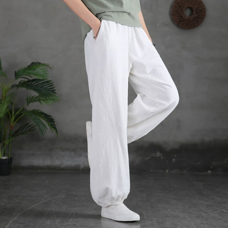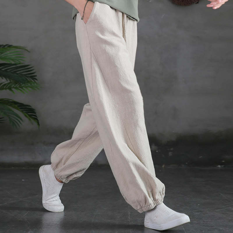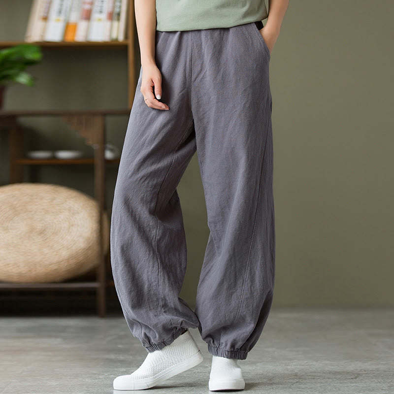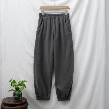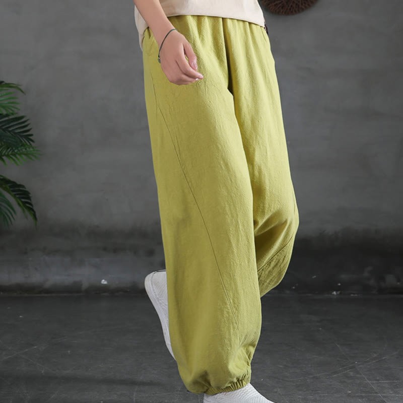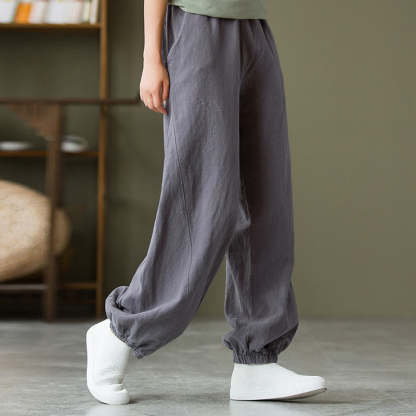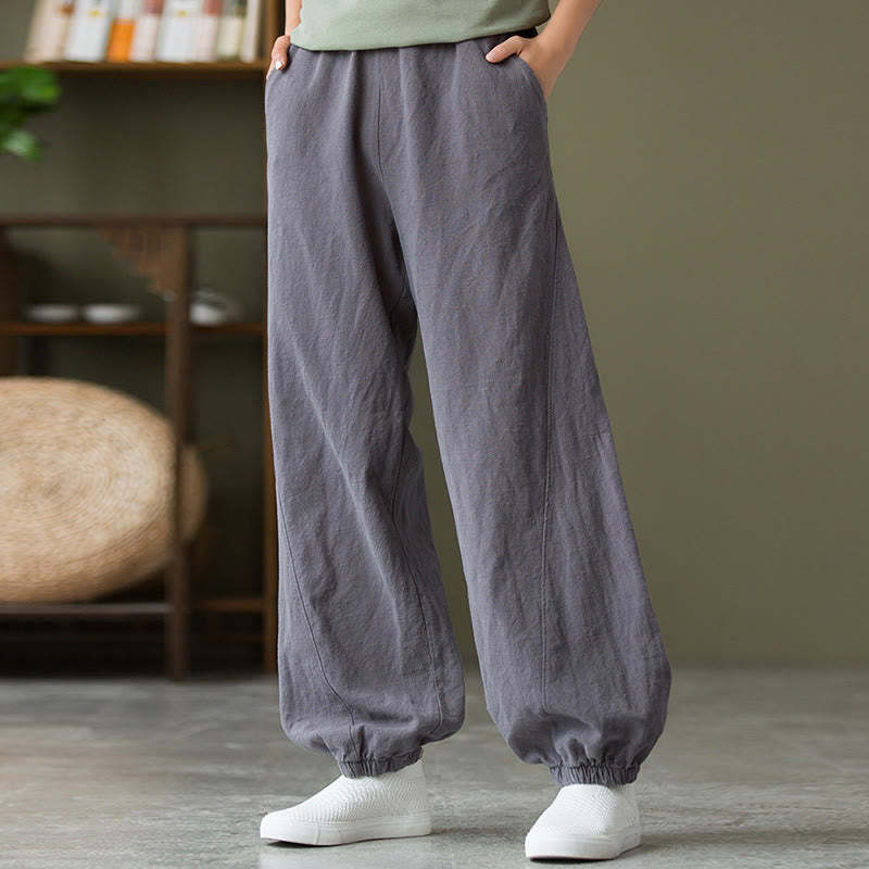 Buddha Stones Plain Color Ramie Linen Cotton Pants With Pockets