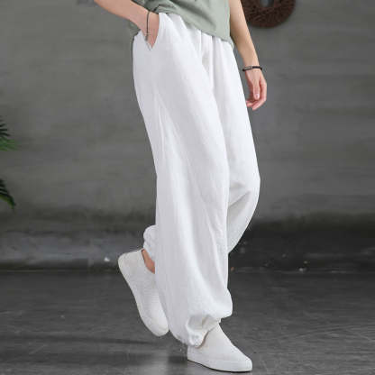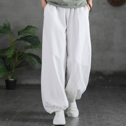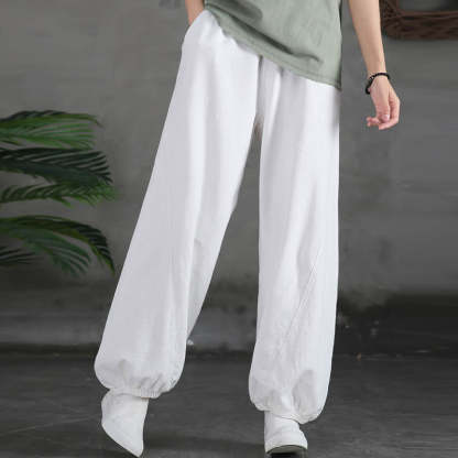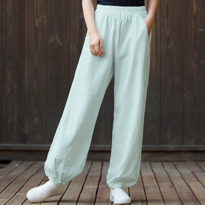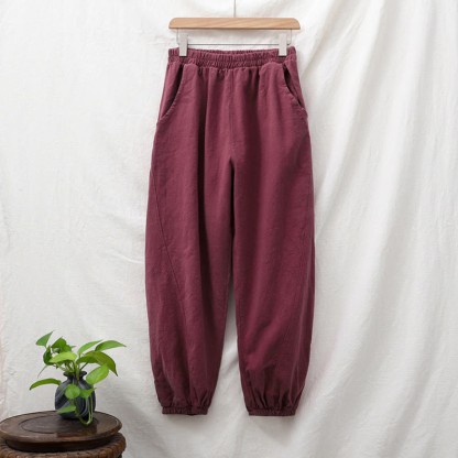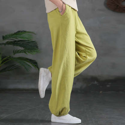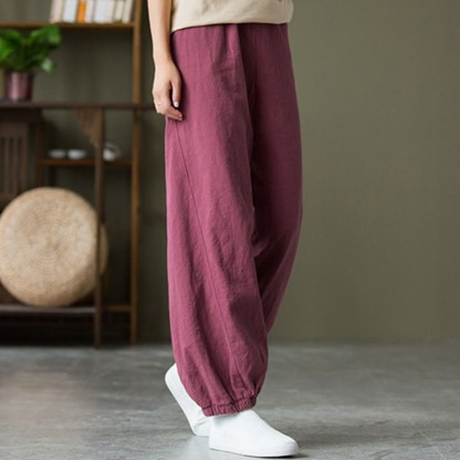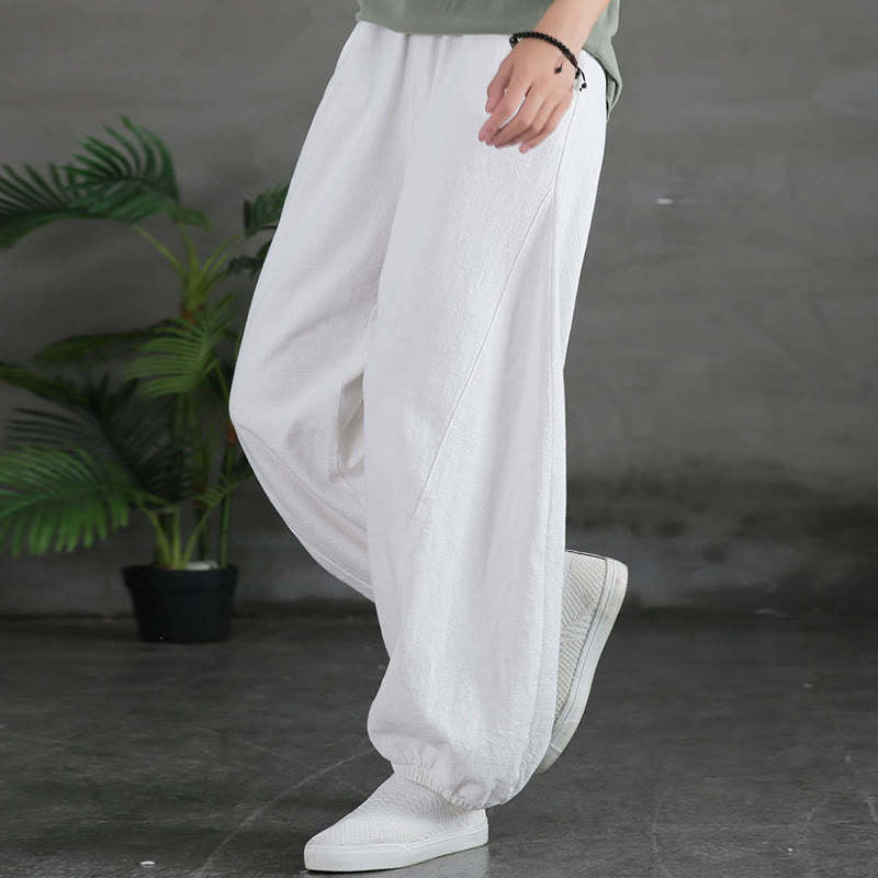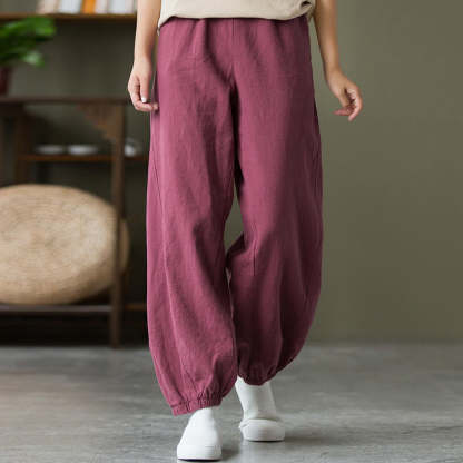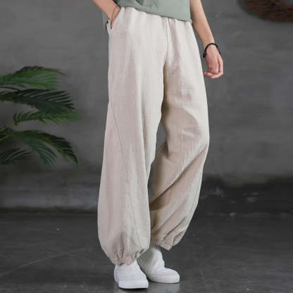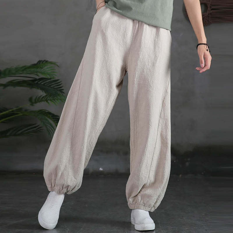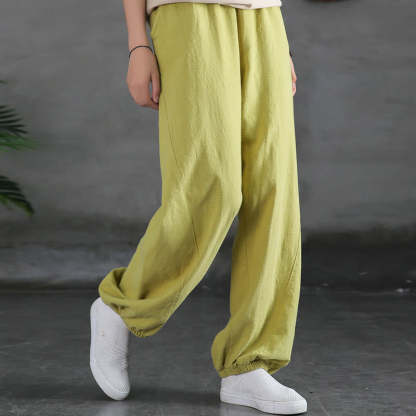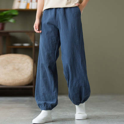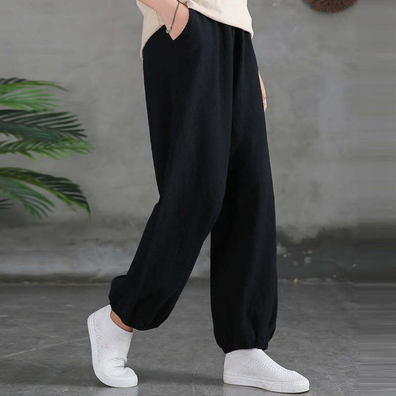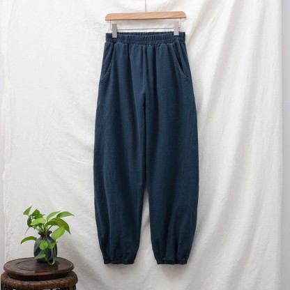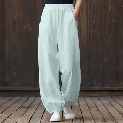 Buddha Stones Plain Color Ramie Linen Cotton Pants With Pockets