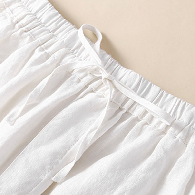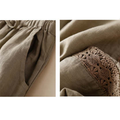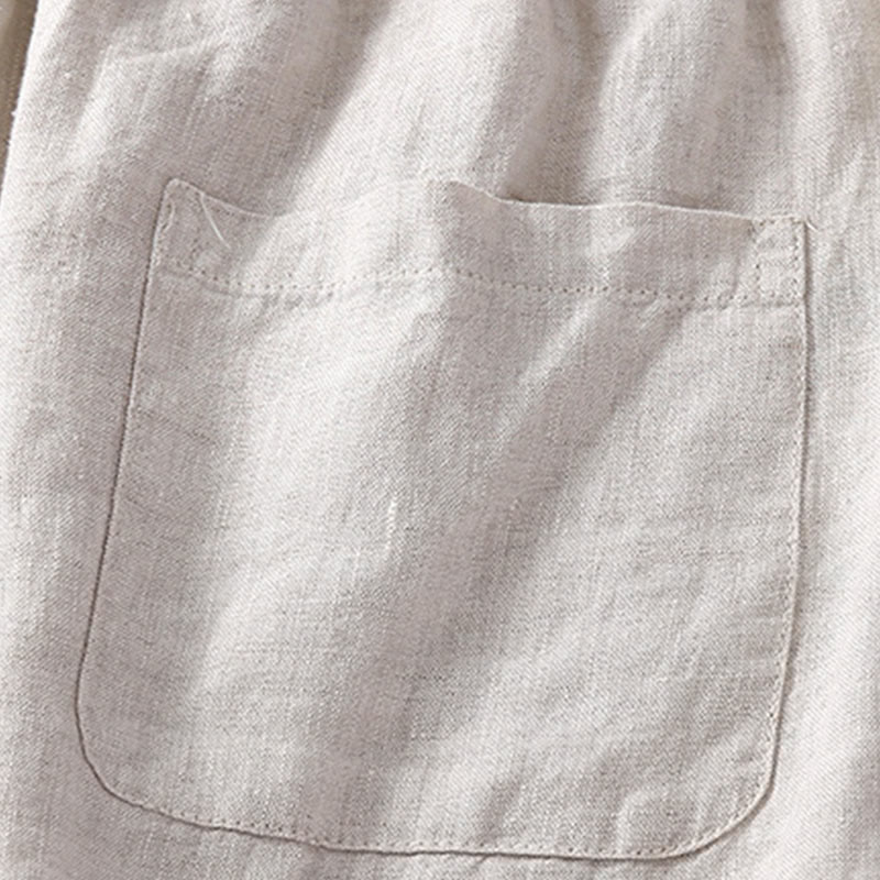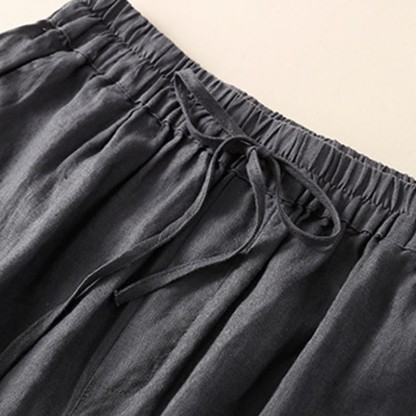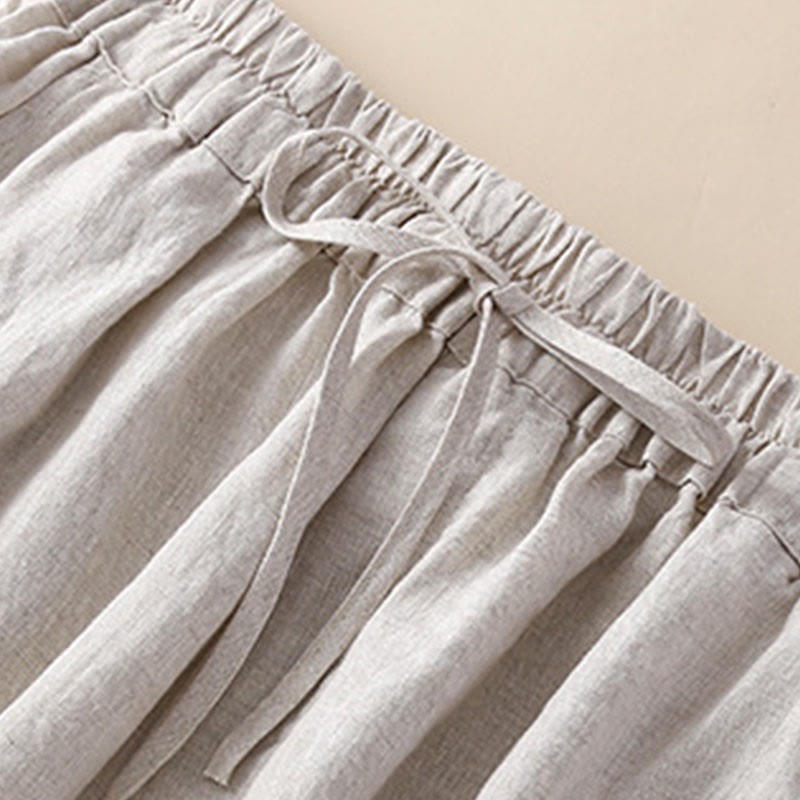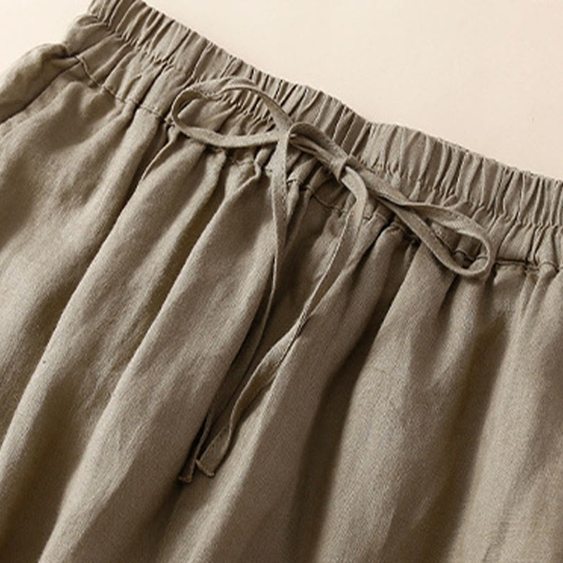 SIMPLE DESIGN: The pants features simple design elements. Elastic waistband. These are natural Ramie Linen fiber and flexible in the waist.