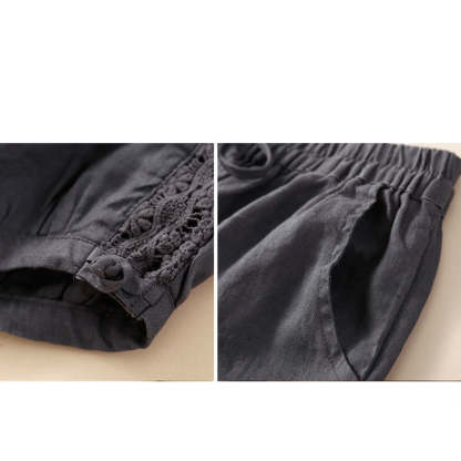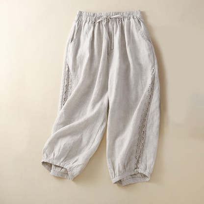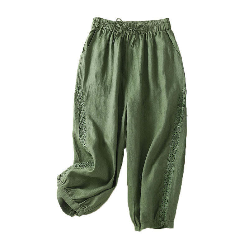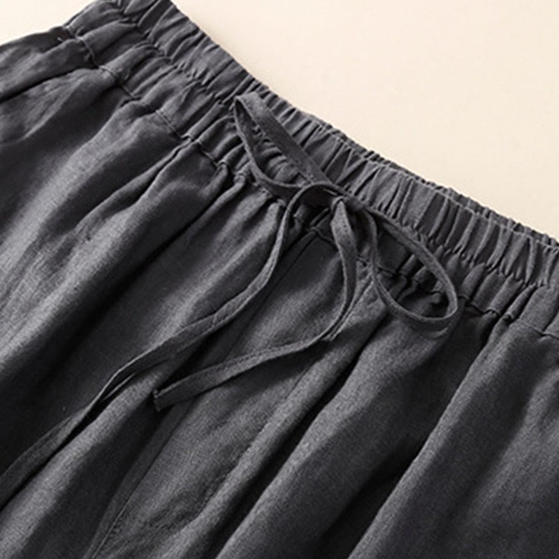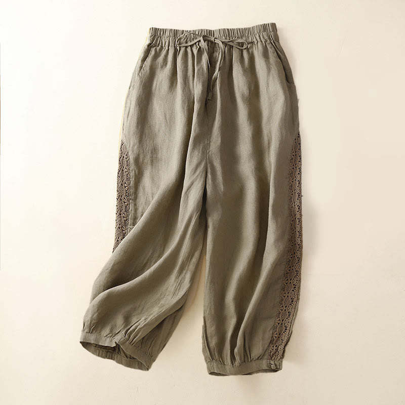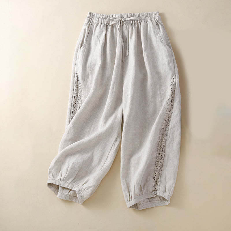 Buddha Stones Solid Color Flower Loose Drawstring Harem Pants With Pockets