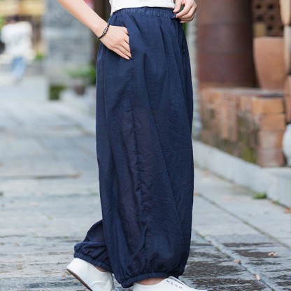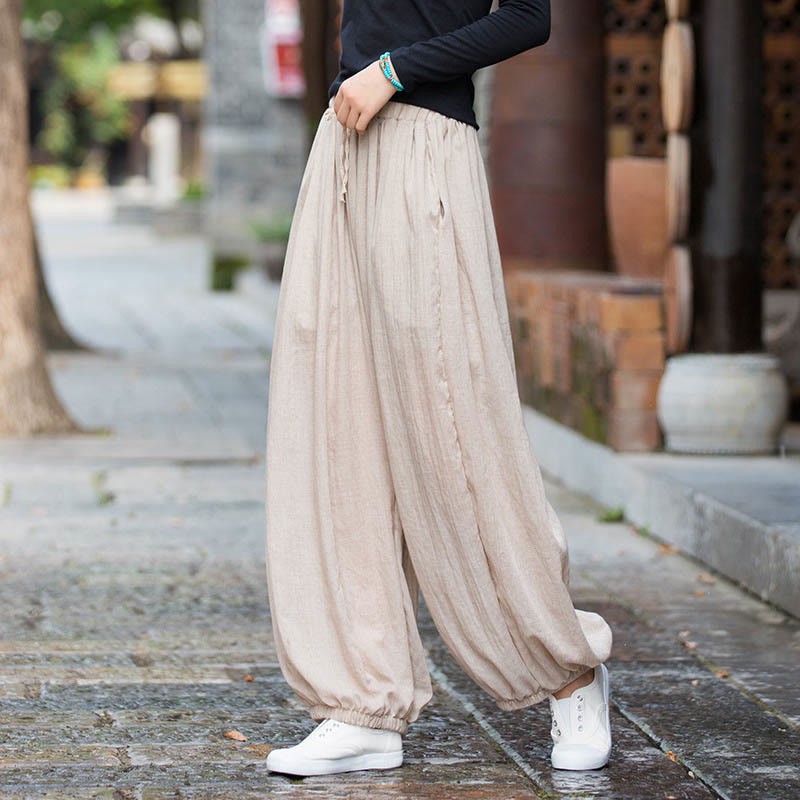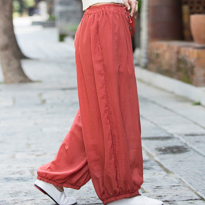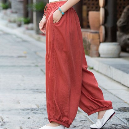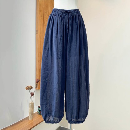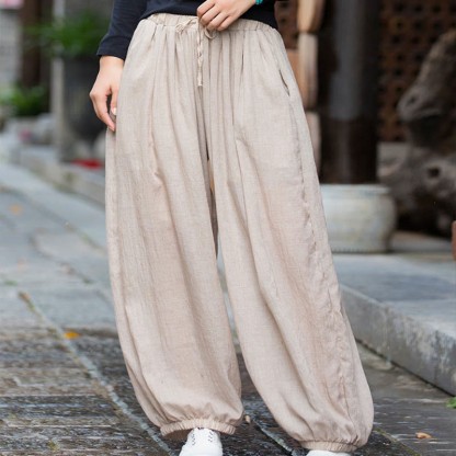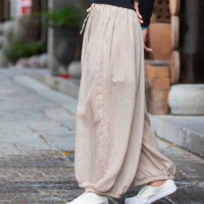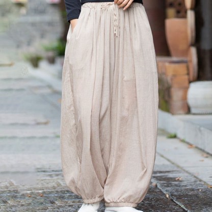 Buddha Stones Summer Plain Color Linen Drawstring Pants With Pockets