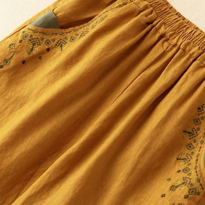 Vintage Embroidery Harem pants feature an elastic waist and intricate embroidery, combining traditional artistry with modern comfort. These harem pants are designed with a relaxed fit and functional pockets, symbolizing ease and practicality. The unique embroidery adds a touch of cultural heritage, making these pants perfect for those who appreciate both style and comfort in their everyday wardrobe.💕