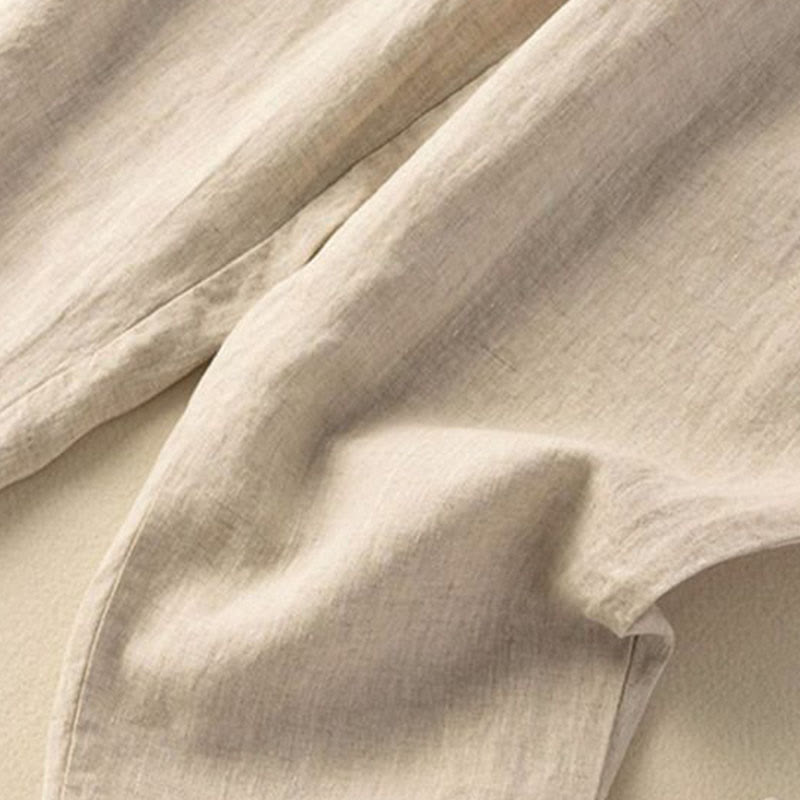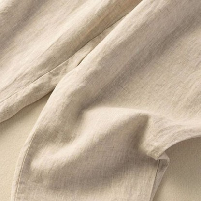 SIMPLE DESIGN: The pants features simple design elements. Elastic waistband. These are natural Ramie Linen fiber and flexible in the waist.