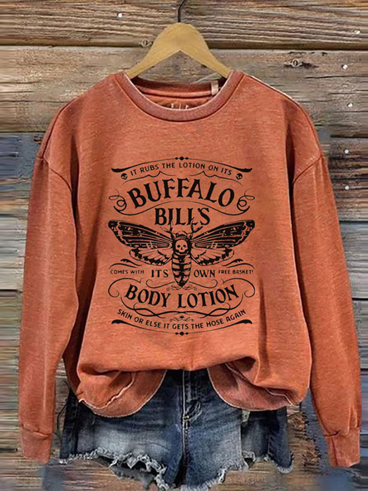 Buffalo Bill Halloween Printed Round Neck Long Sleeve Sweatshirt