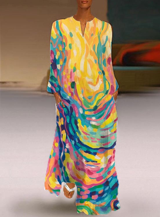 Casual Abstract Art Print V-neck Long-sleeved Dress