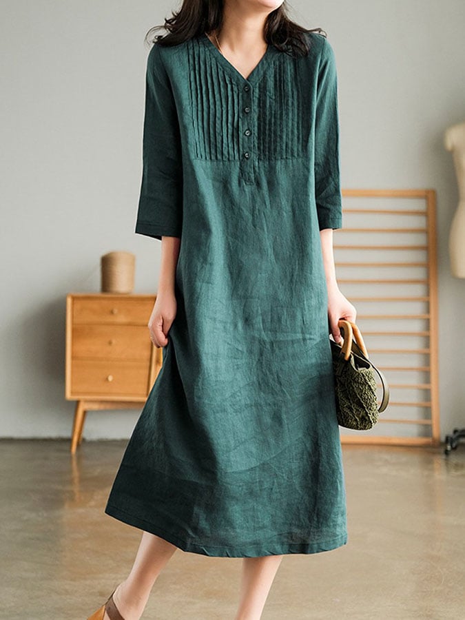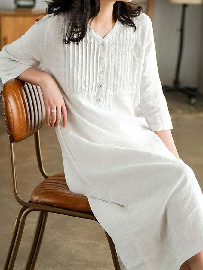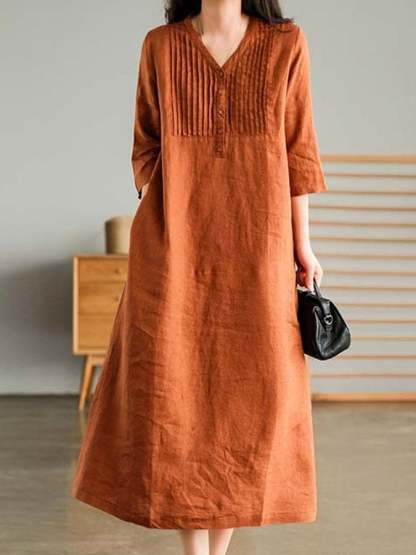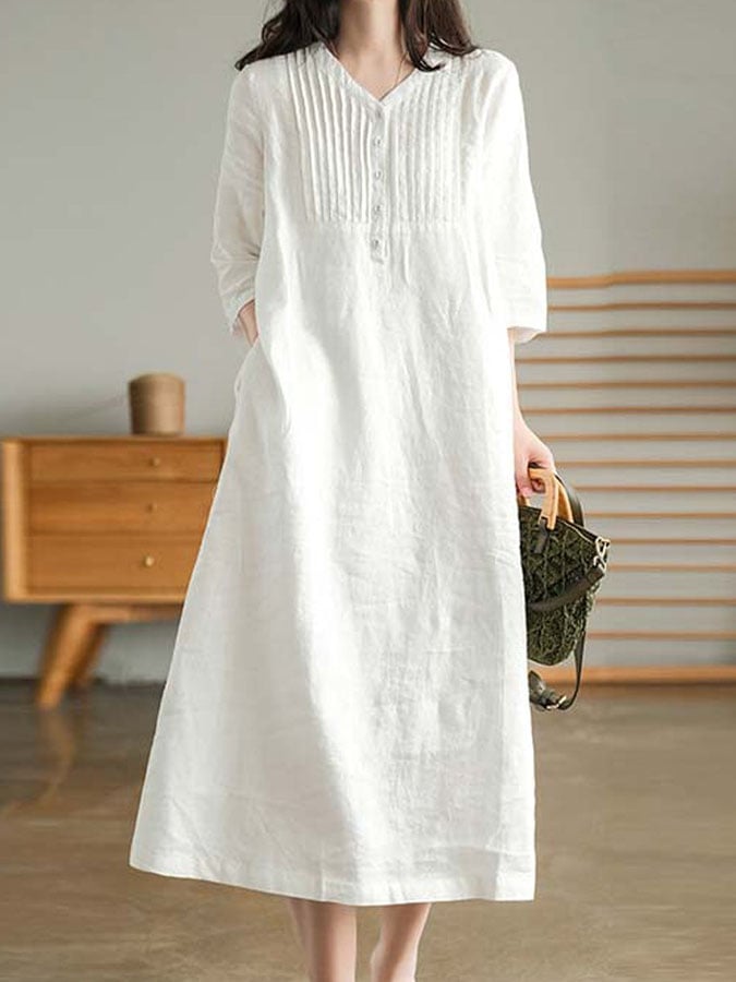 Casual Cotton And Linen Dress