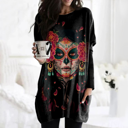 Casual Floral Queen Of The Dead Print Tunic