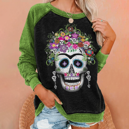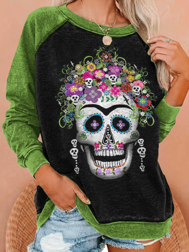 Casual Floral Skull Print Sweatshirt