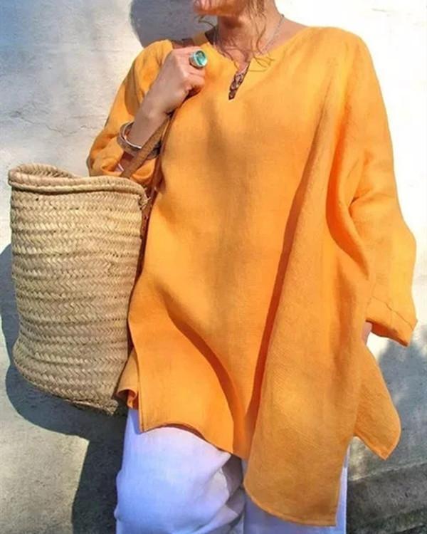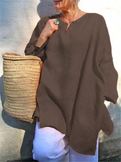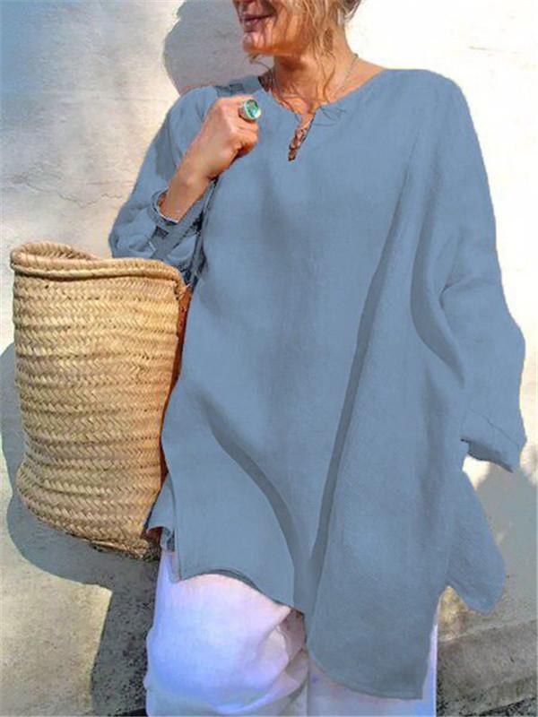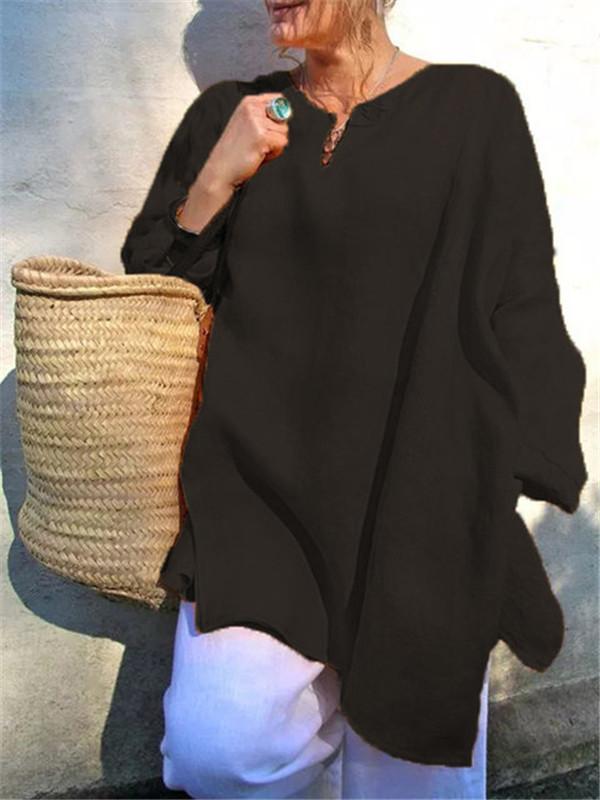 Casual Long Sleeve Linen Plus Size V-Neck Blouses