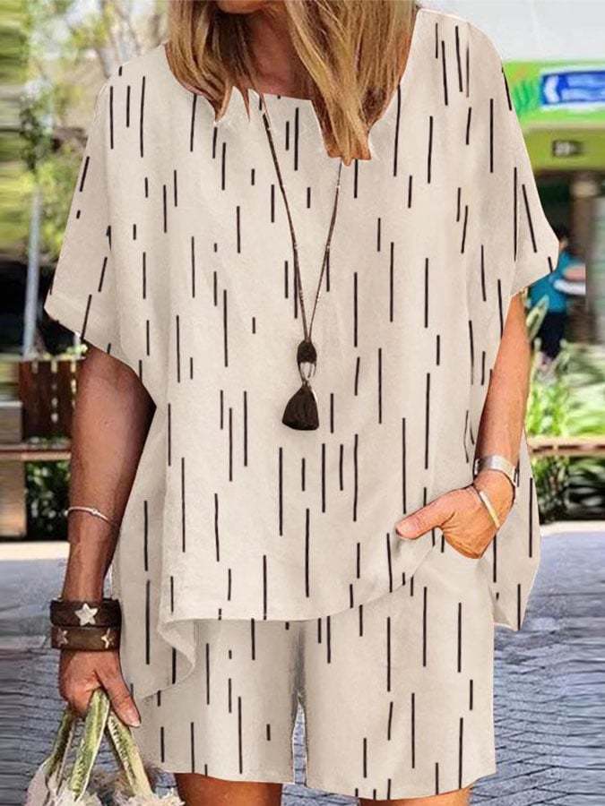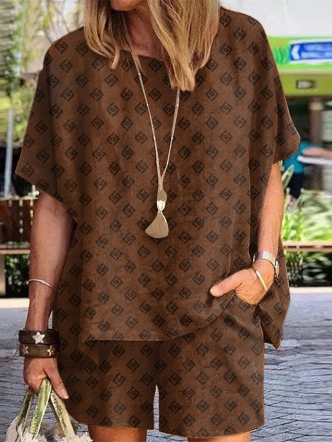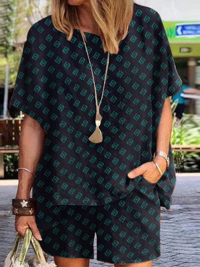 Casual Print Short Sleeve Two-Piece Set