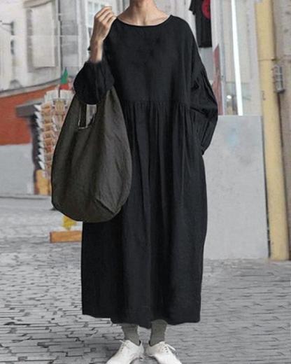 Casual Pure Color O Neck Linen Cotton Cocoon Dress