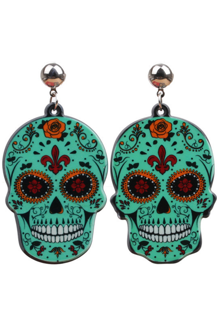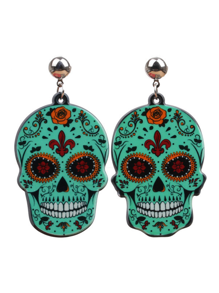 Casual Skull Floral Acrylic Earrings