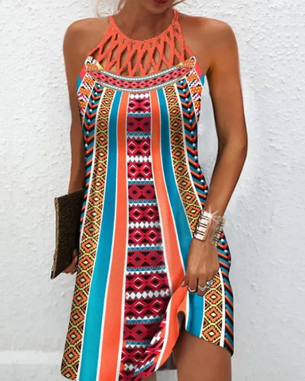 Casual Sling Hollow Sleeveless Mini Vintage Dress