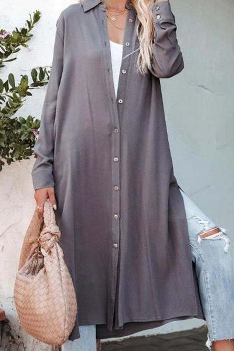 Casual Solid Buckle Turndown Collar Shirt Dress Dresses