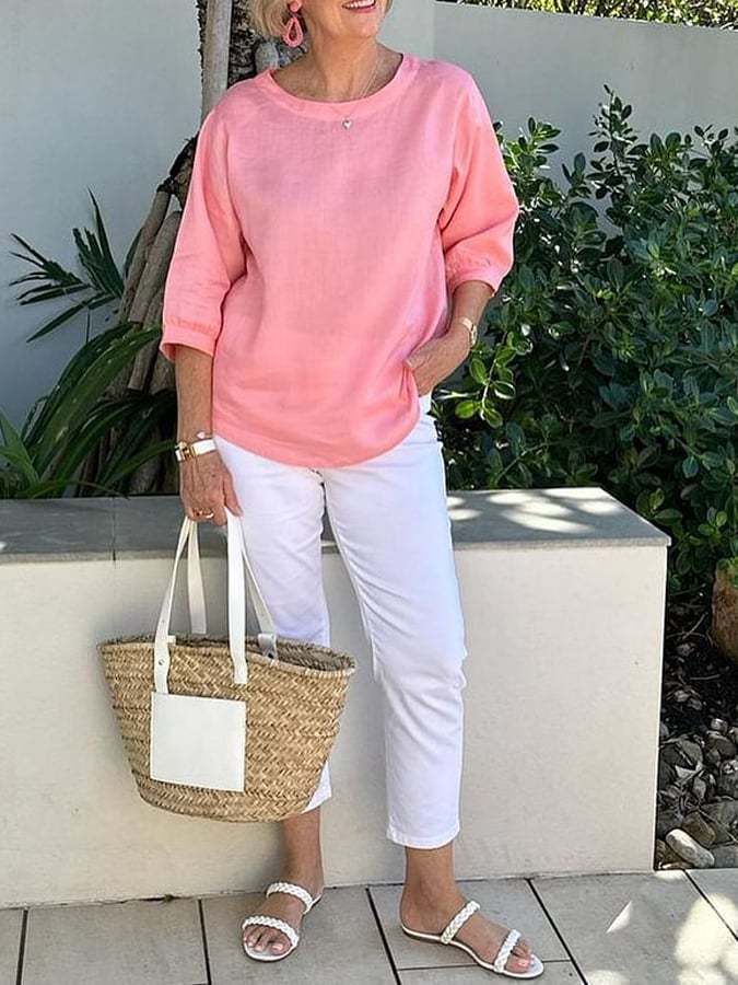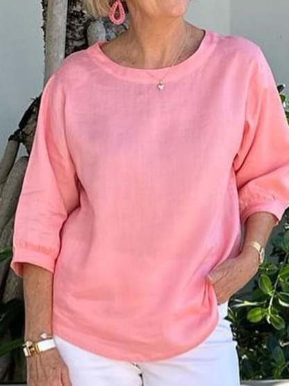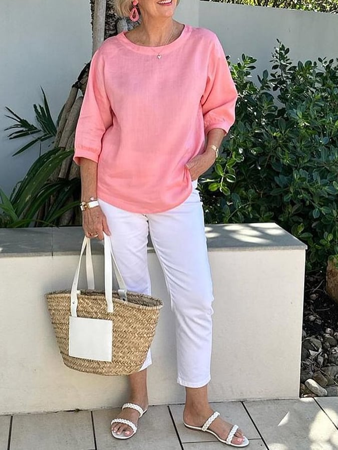Casual Solid Color 3/4 Sleeve Top
